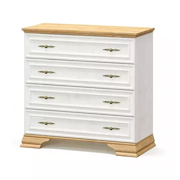 The set consists of 4 pieces: 1 bed, 2 nightstands, 1 chest of drawers