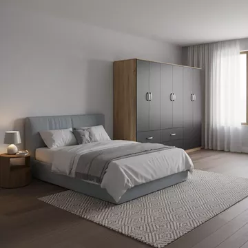 Includes six doors with an internal hanging rail and four large drawers at the bottom for storing clothes and accessories.