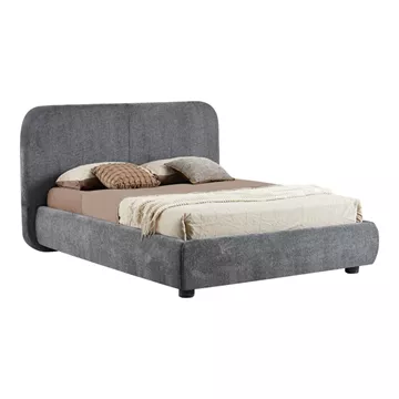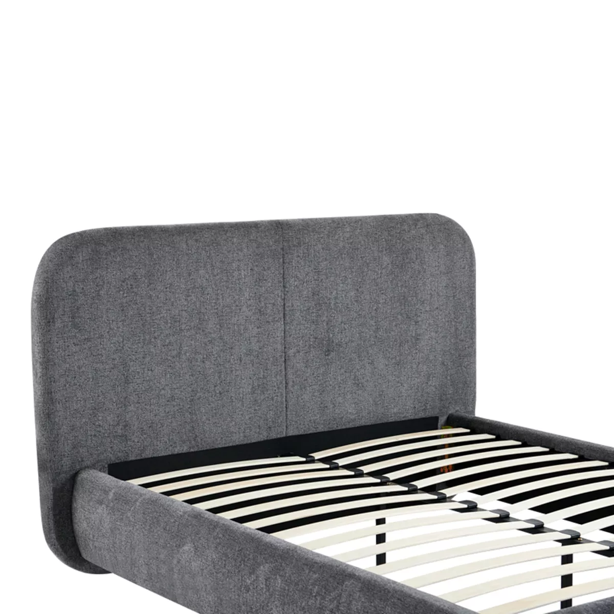 Supported by plywood wooden legs upholstered with fabric in the same color as the bed.
