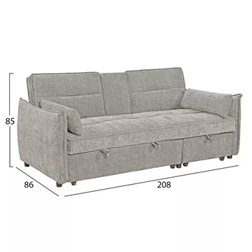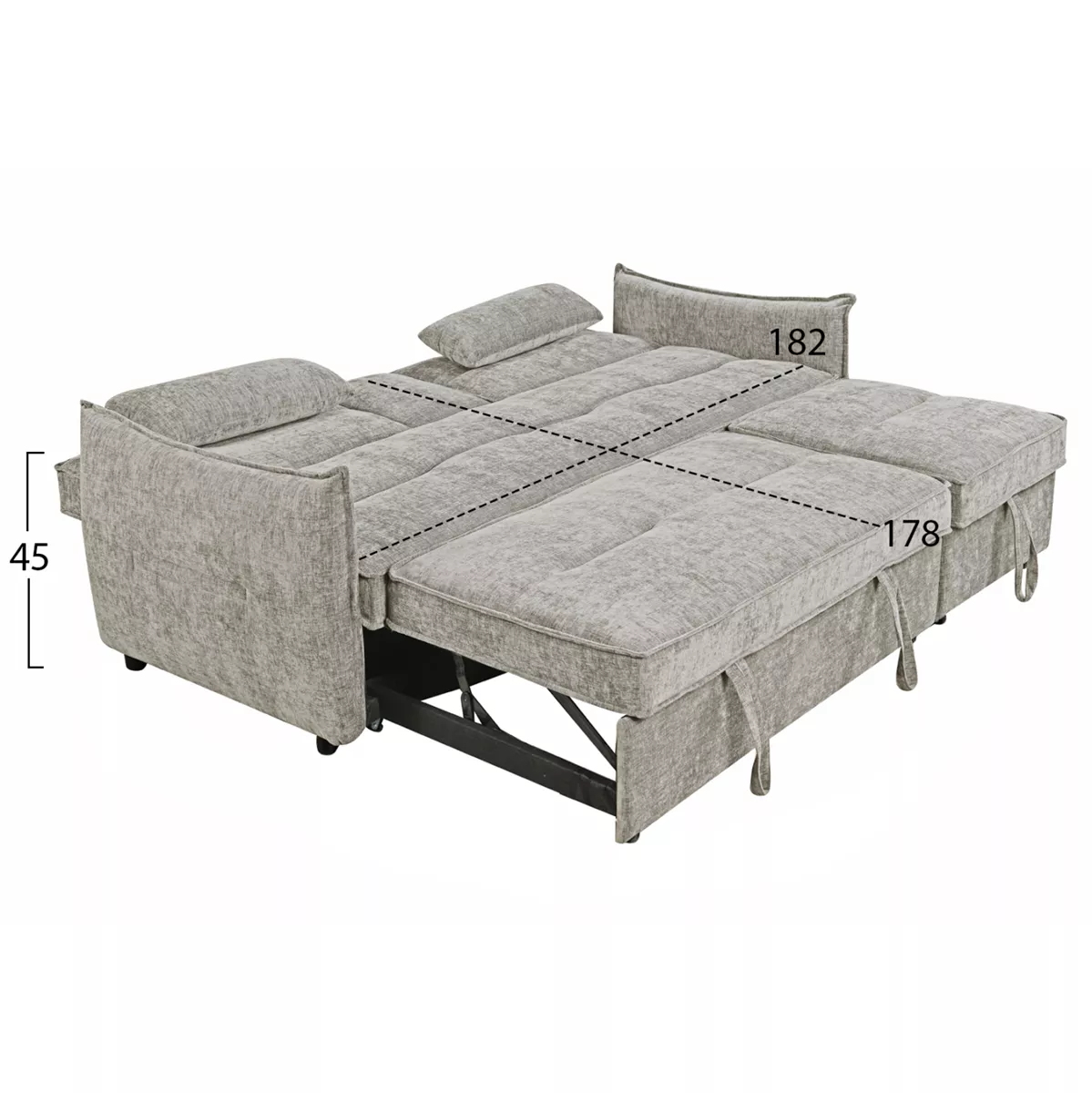 The VELAR two-seater sofa-bed is a particularly practical solution for spaces that require flexibility, as it combines comfort, ergonomics and functional design. The integrated cup holder/armrest in the middle and the double sliding mechanism offer multiple configuration possibilities, while the BEIGE fabric upholstery makes it ideal for modern living rooms.