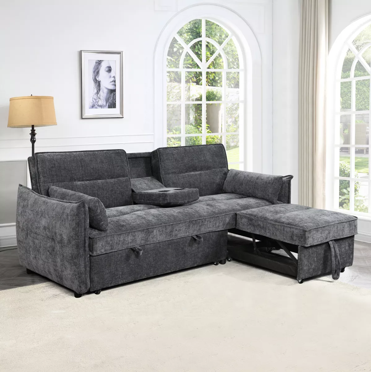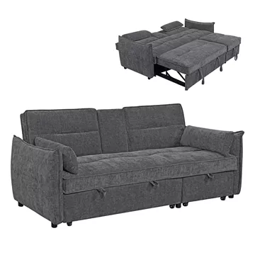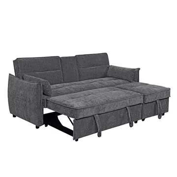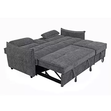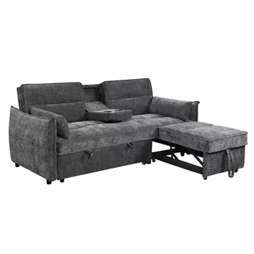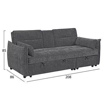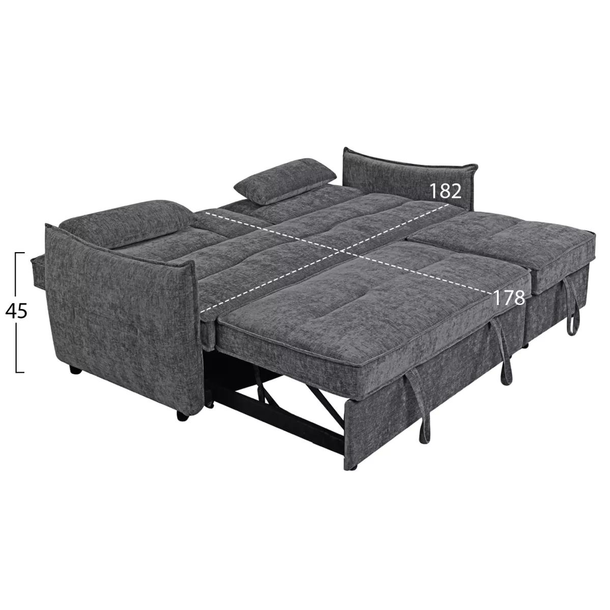 The VELAR two-seater sofa-bed is a particularly practical solution for spaces that require flexibility, as it combines comfort, ergonomics and functional design. The integrated cup holder/armrest in the middle and the double sliding mechanism offer multiple configuration possibilities, while the grey fabric upholstery makes it ideal for modern living rooms.