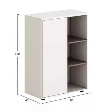 The NEWLINE short cabinet/bookcase is a practical and stylish storage solution for offices and professional spaces. The combination of white melamine with light brown creates a bright and modern effect that is easily integrated into any office environment.