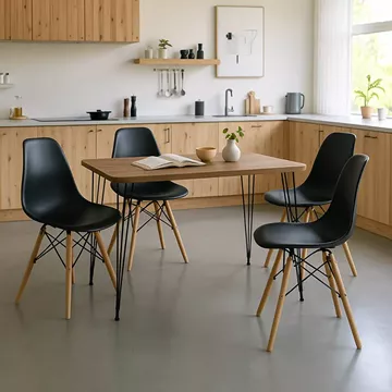 - Στήριξη σε 4 ενισχυμένα ξύλινα πόδια οξιάς, ενοποιημένα με μαύρους μεταλλικούς βραχίονες, εξαιρετικής ποιότητας και αντοχής στο βάρος όσο και στο χρόνο.