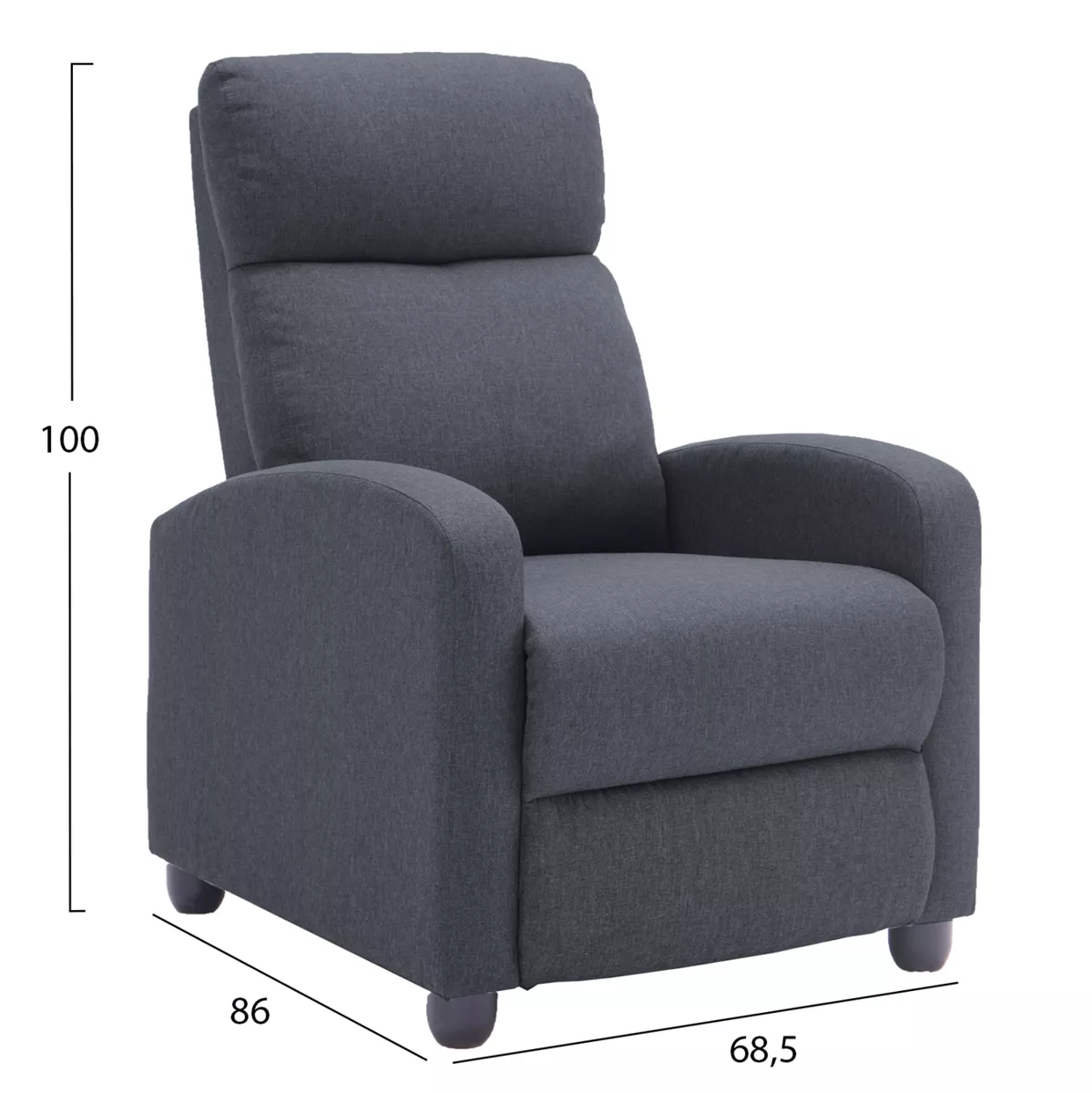 Armchair with Push-Back Relax Mechanism «DROSEN» in Grey Fabric