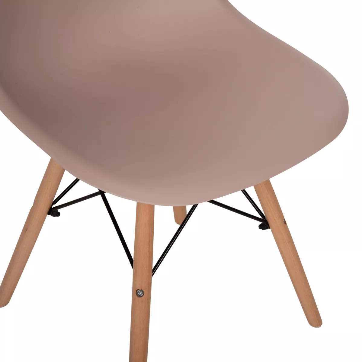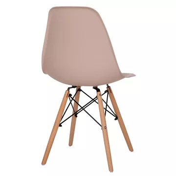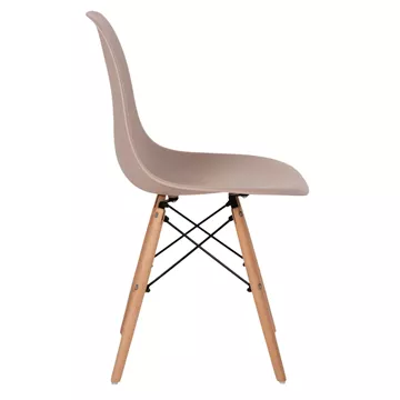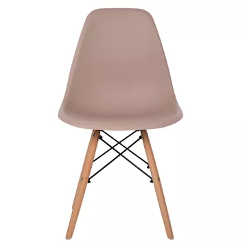 The TWIST dining chair (2PCS) has a simple and modern design without arms, while the seat with a medium height back is a molded piece of polypropylene in CAPPUCCINO color. The seat rests on 4 outward sloping legs for maximum sturdiness, which are connected to each other and to the seat, with metal rods.