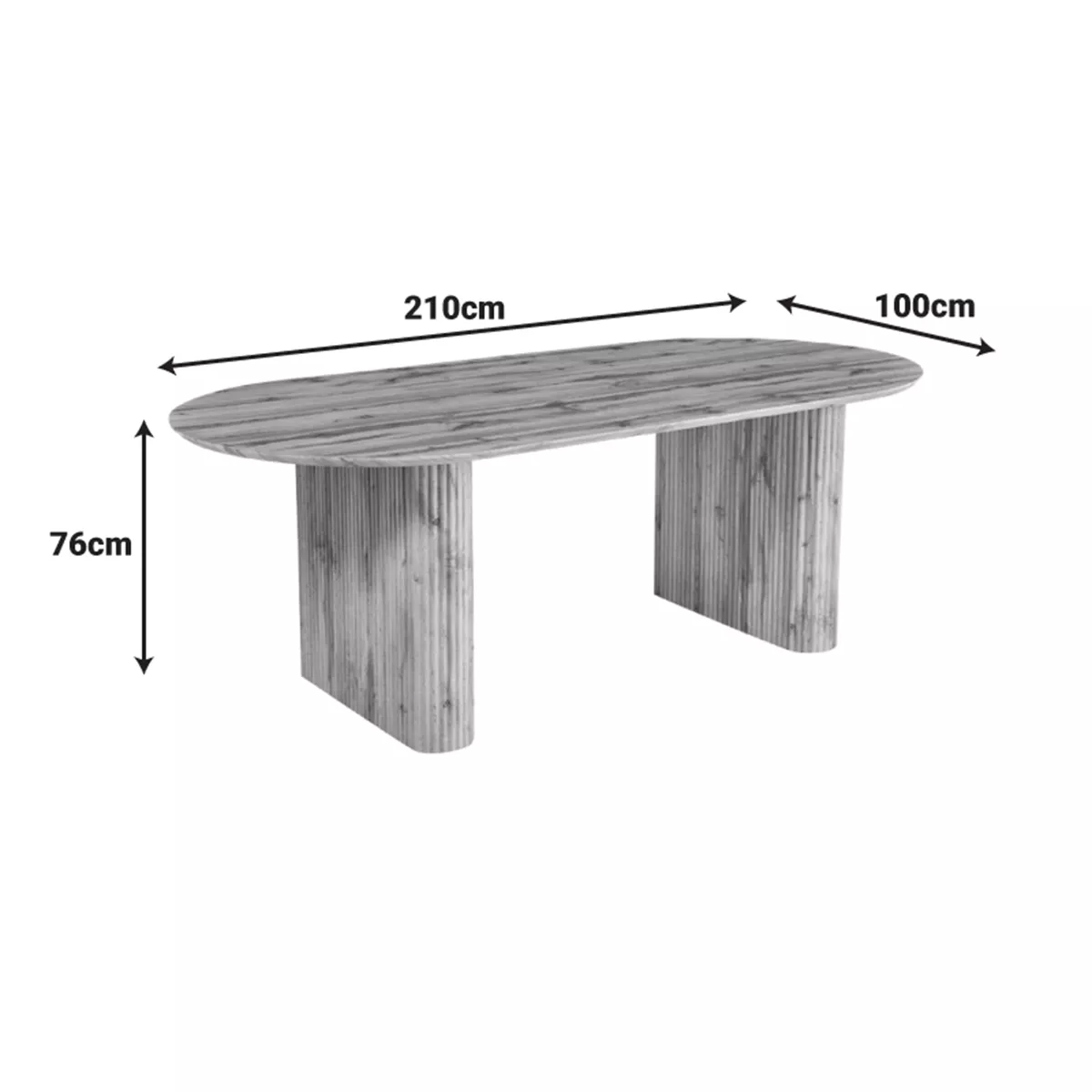 Αναβαθμίστε τον χώρο της τραπεζαρίας σας με αυτό το εντυπωσιακό τραπέζι που συνδυάζει σύγχρονο design και πρακτικότητα. Η οβάλ επιφάνεια sonoma προσδίδει μια αίσθηση φυσικής ζεστασιάς και κομψότητας, ενώ η στιβαρή βάση προσφέρουν εξαιρετική σταθερότητα και μοναδικό στυλ.