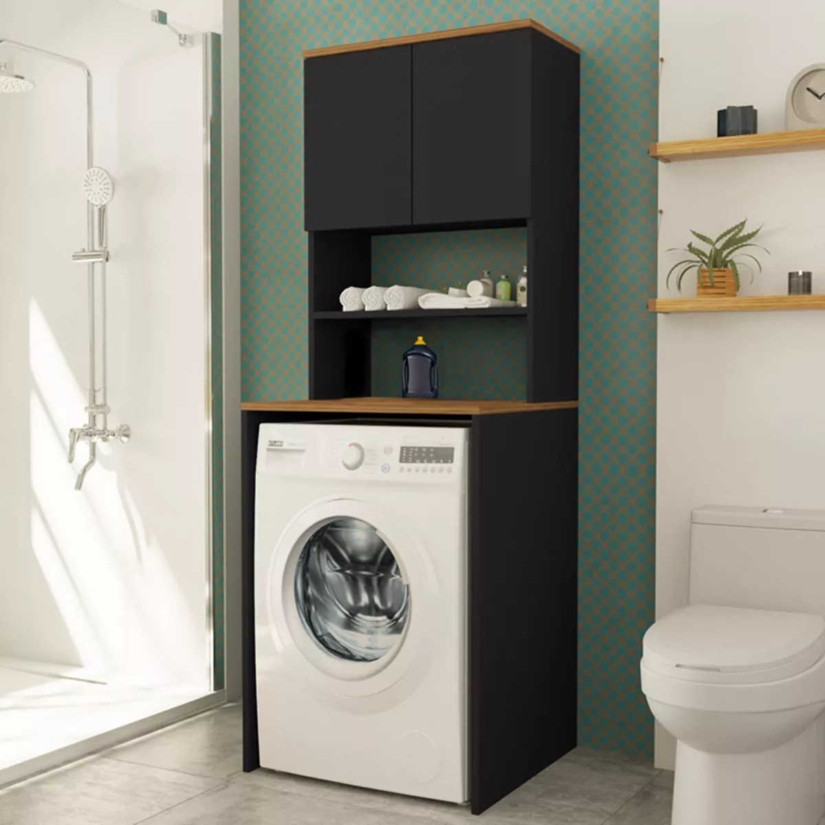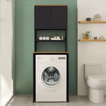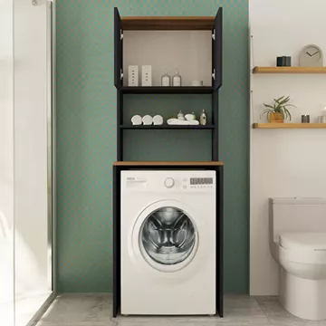 Το έπιπλο πλυντηρίου Rano συνδυάζει την πρακτικότητα με το βιομηχανικό στυλ, προσφέροντας μια λύση για την οργάνωση του μπάνιου σας. Σχεδιασμένο για να φιλοξενεί ένα πλυντήριο ρούχων, διαθέτει επίσης ενσωματωμένα ράφια αποθήκευσης για επιπλέον λειτουργικότητα.