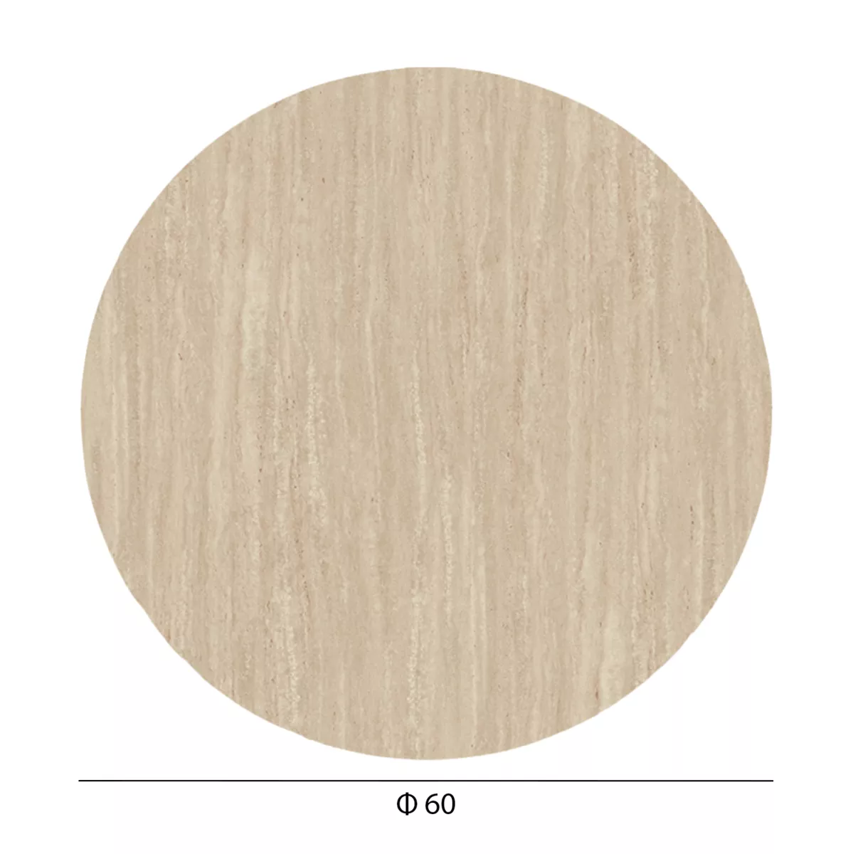 Round beveled tabletop in TRAVERTINE stone color, which is suitable for contact with food. In general, the material is environmentally friendly. It can be used in various places such as cafes, restaurants, and tourist accommodation, either indoors or outdoors.