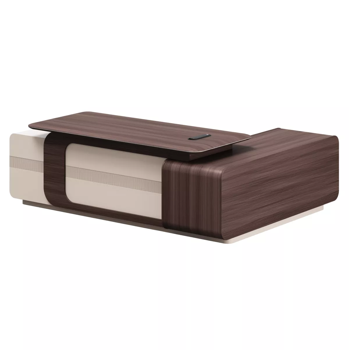 PRESIDENT Left Corner Desk in Walnut & Beige