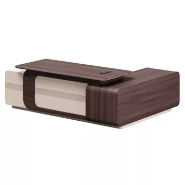 The PRESIDENT corner desk in a left angle as you sit is another modern and functional solution for professional, mainly, office spaces. Its design combines walnut-colored melamine with elegant beige details, creating a sophisticated and professional result.