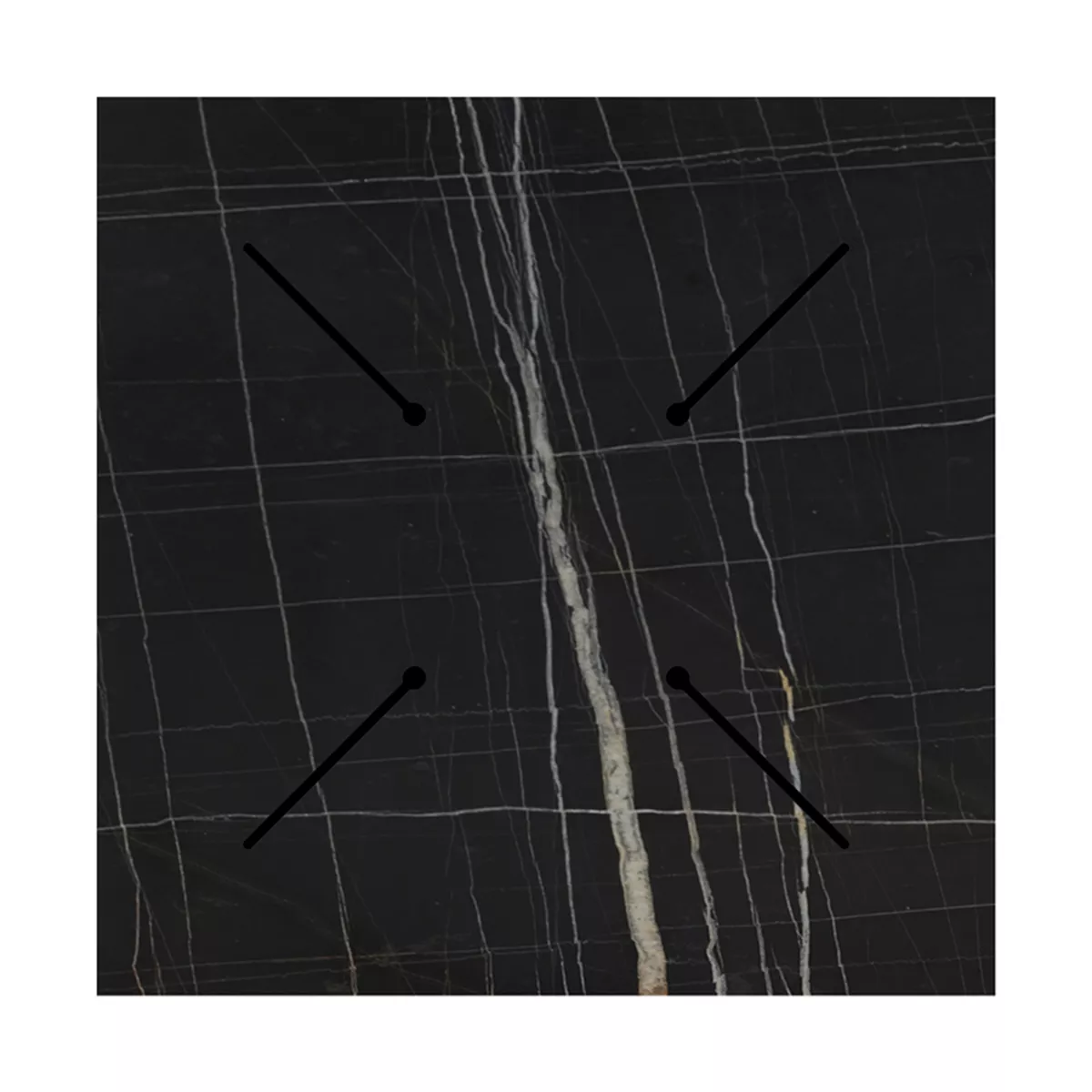 • The surface includes a support guide for the table base. It is not drilled; the screw head is placed within the engraved guide and tightened to the metal base with a nut.