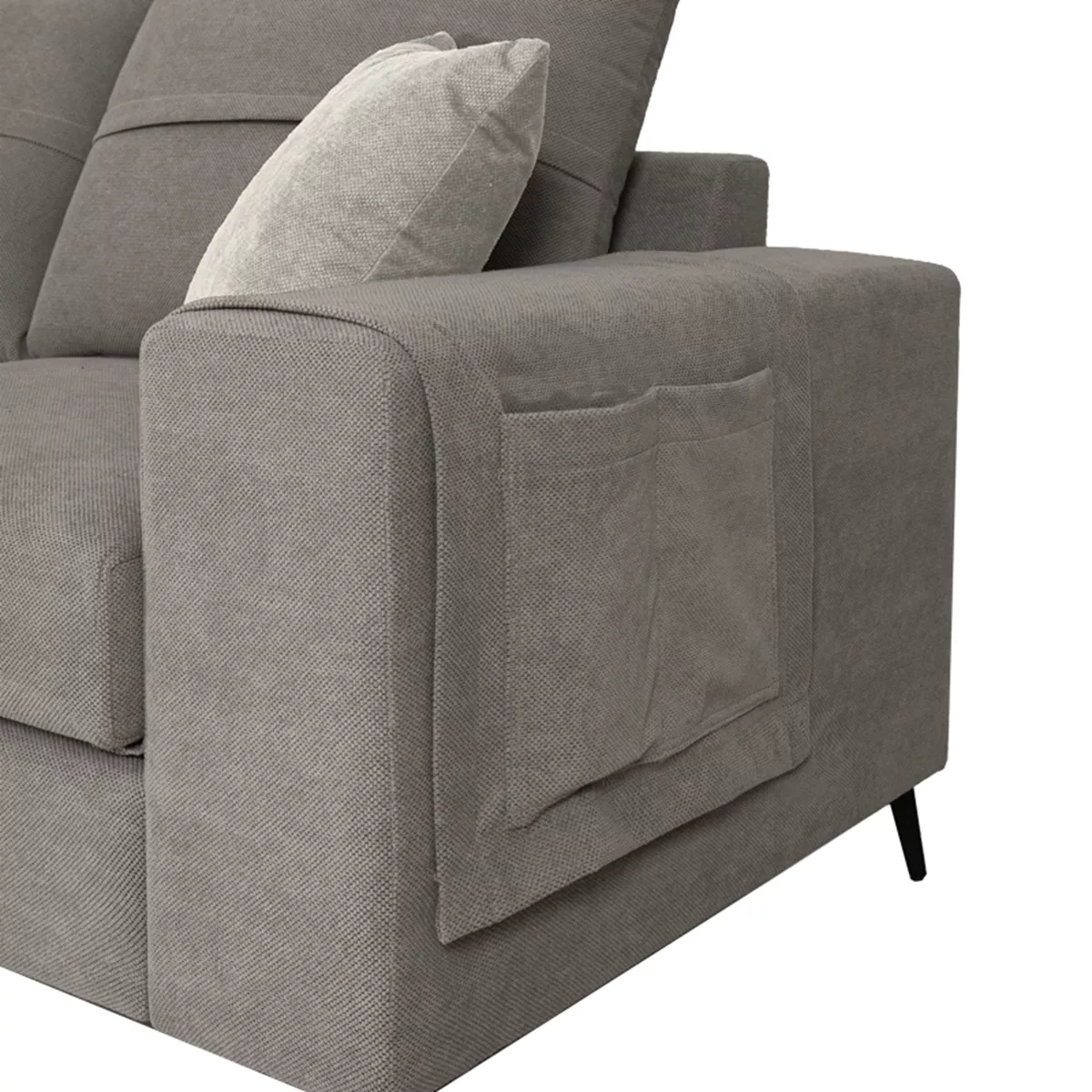 - Sofa and back cushion color: Grey - Comes with two decorative cushions in light grey color.