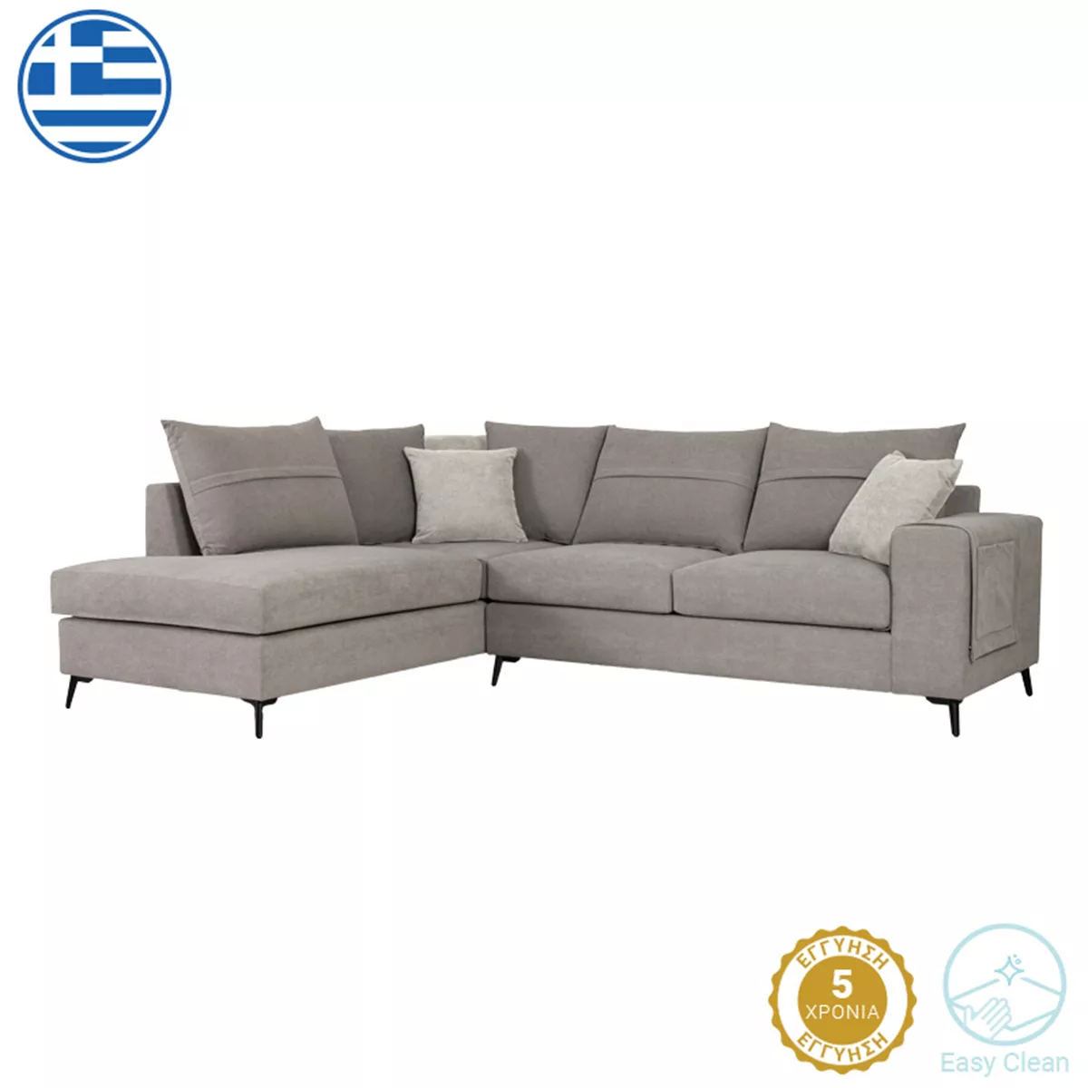 Corner sofa with right corner Montana pakoworld grey fabric with light grey cushions 275x215x93cm