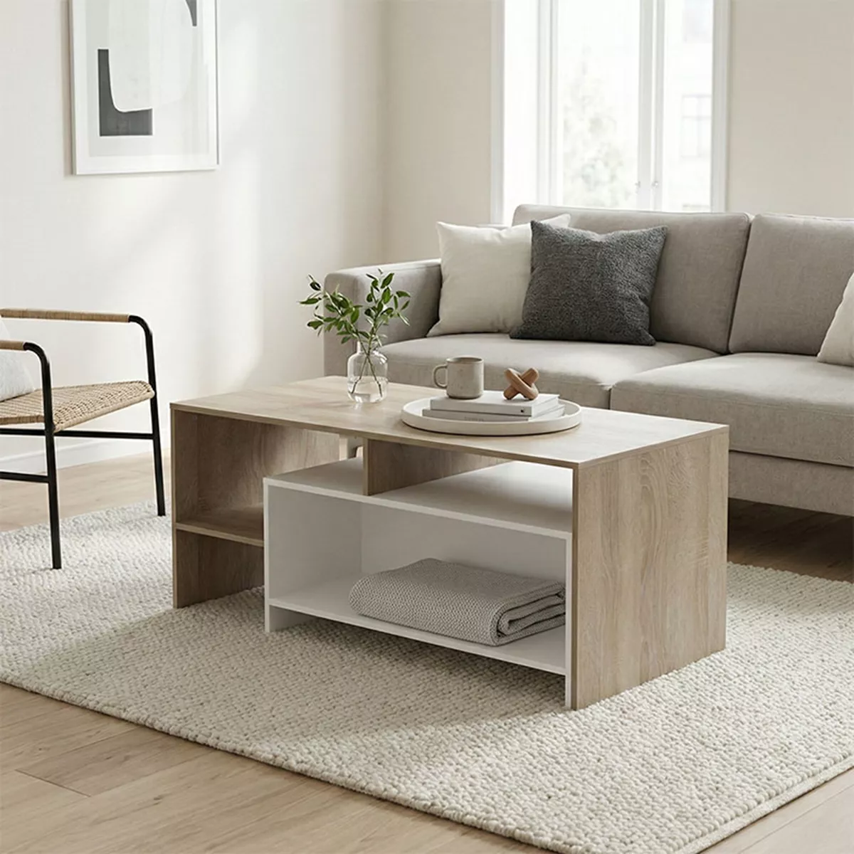 The modern and functional Consa coffee table perfectly combines aesthetics and practicality, adding a contemporary character to any living room space.