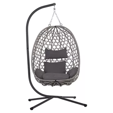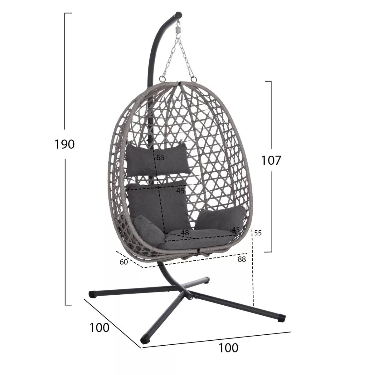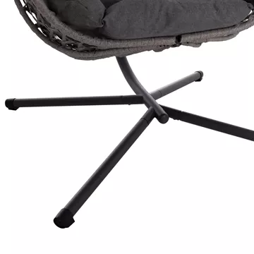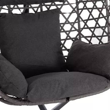The hanging nest NESTA is a particularly elegant and comfortable proposal for outdoor and indoor spaces. The sturdy grey metal frame ensures safety and durability, while the nest with grey P.E. Rattan weave adds modern aesthetics and natural character.