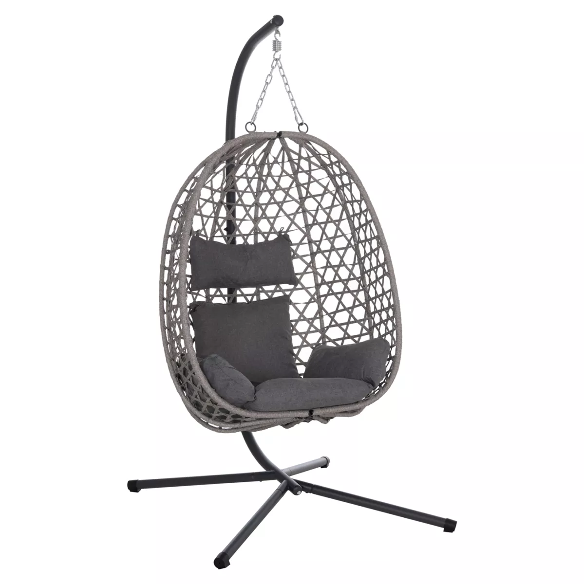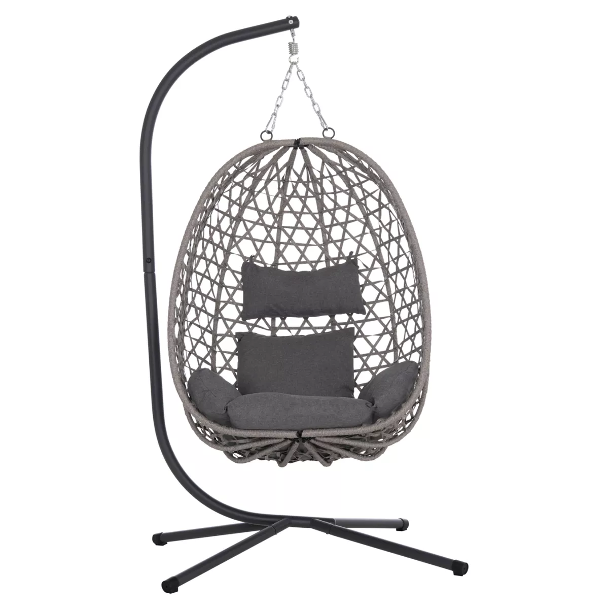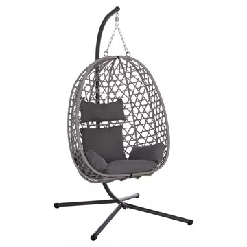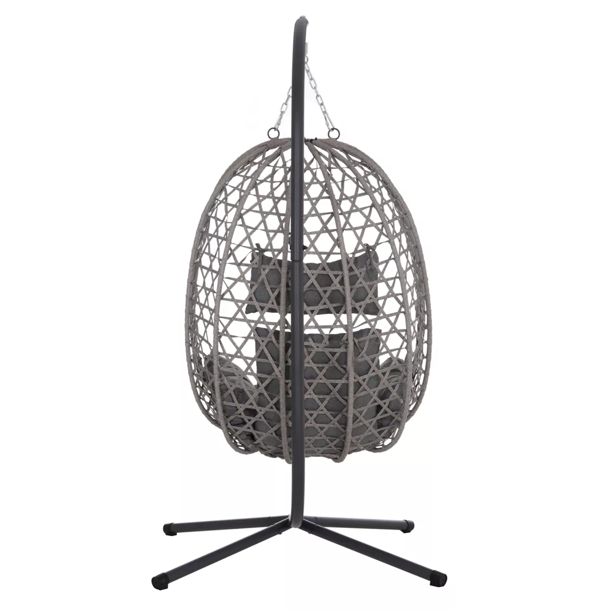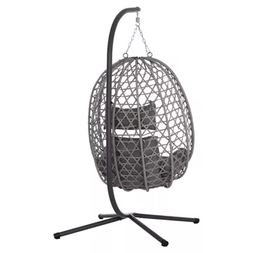 Hanging Nest (hammock style) Single NESTA with Grey Metal Frame and P.E. Rattan Weave