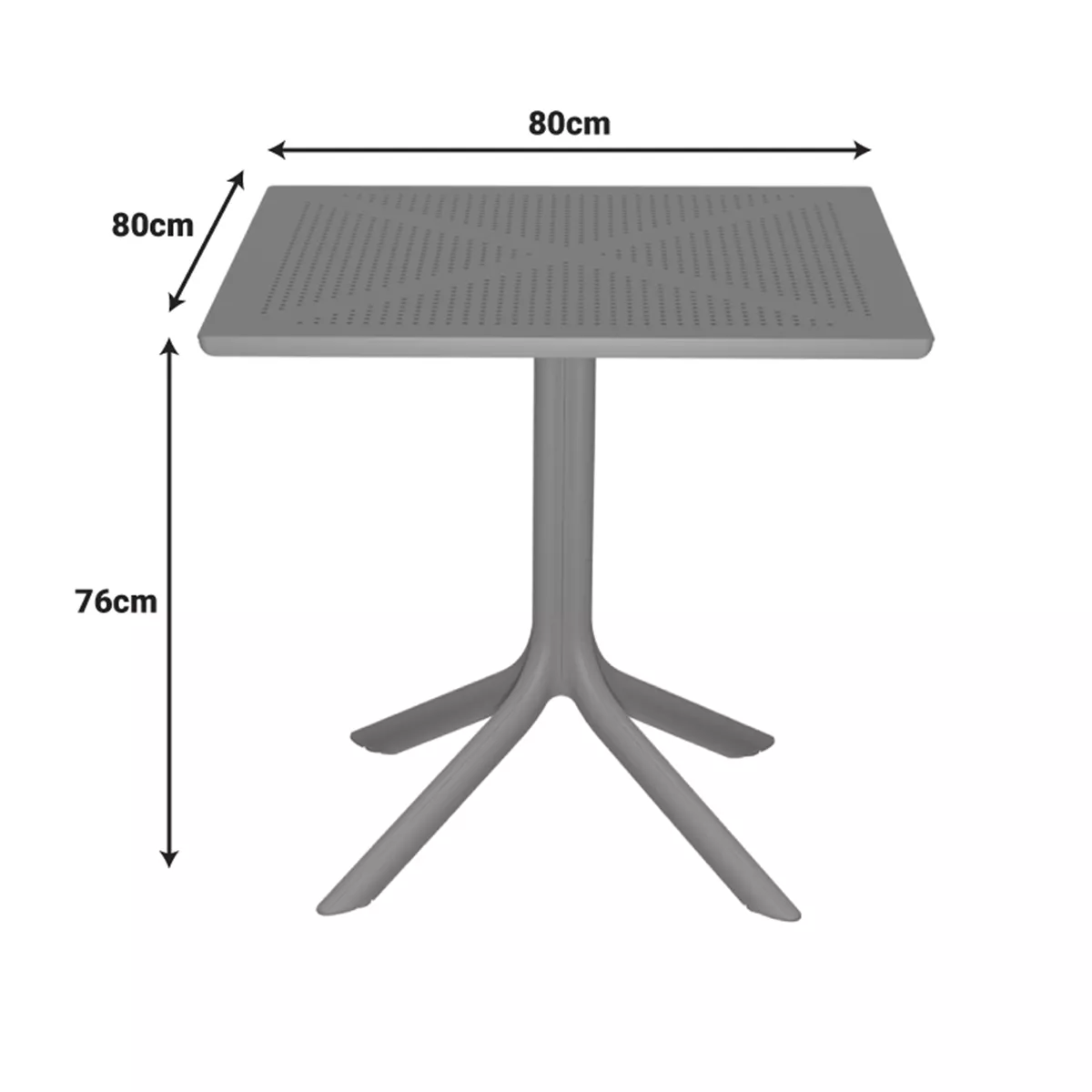 • Perforated Surface: The elegant perforated tabletop allows for quick drainage of rainwater, keeping the surface dry and clean at all times.