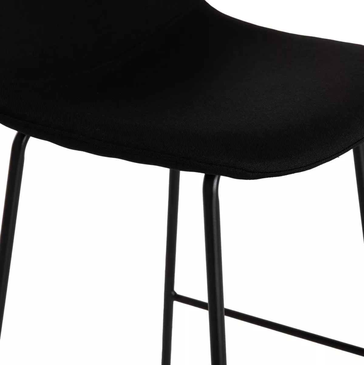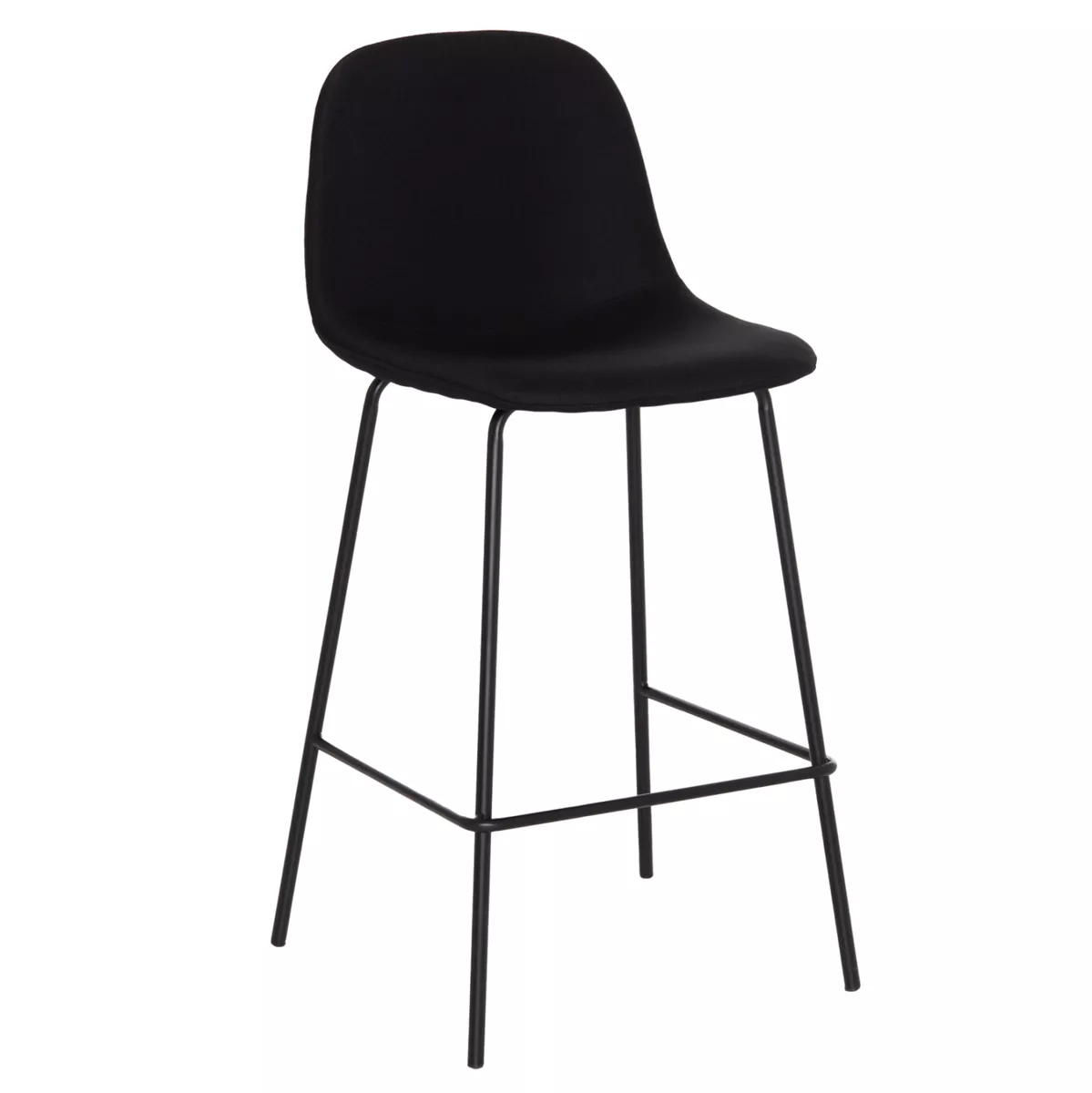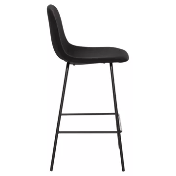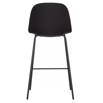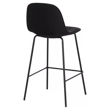 Meet VINCENT. A BLACK quality fabric bar stool that has everything you could want from such a piece of furniture. VINCENT is simple, high-quality and elegant in appearance, and it is definitely an eye-catcher. It is medium height with a backrest and a black metal frame with 4 legs and a rod that serves as a "step" to rest your feet on, giving greater comfort to the stool.