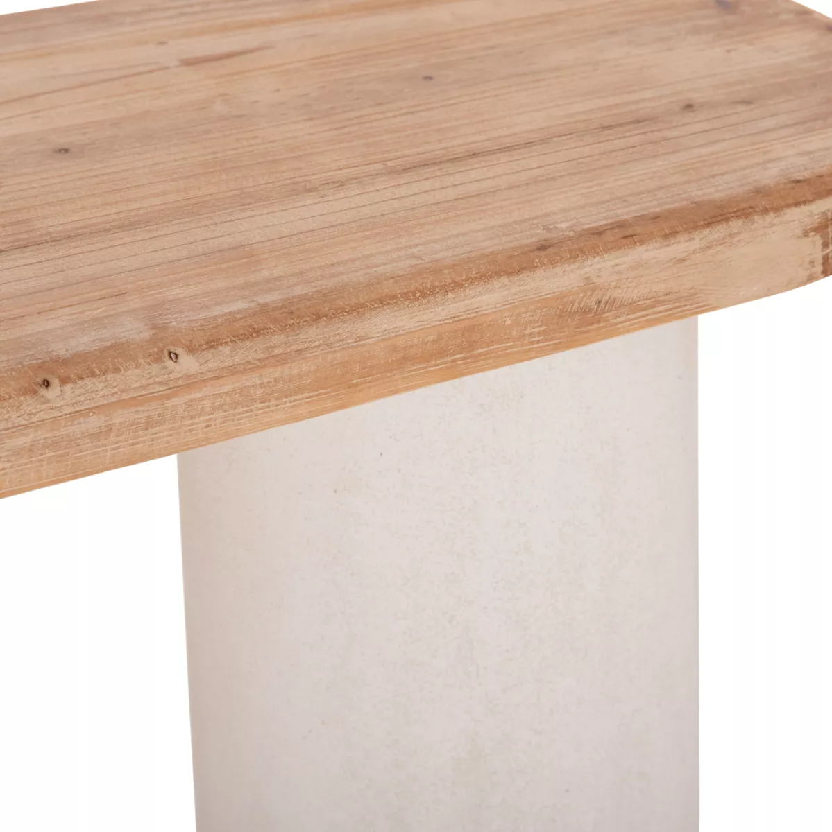 • The surface of the console is made of fir wood in a natural shade, with an unpolished and grainy texture that highlights the authentic character of the wood. Fir is a light but durable wood that offers natural beauty and timelessness to the furniture.