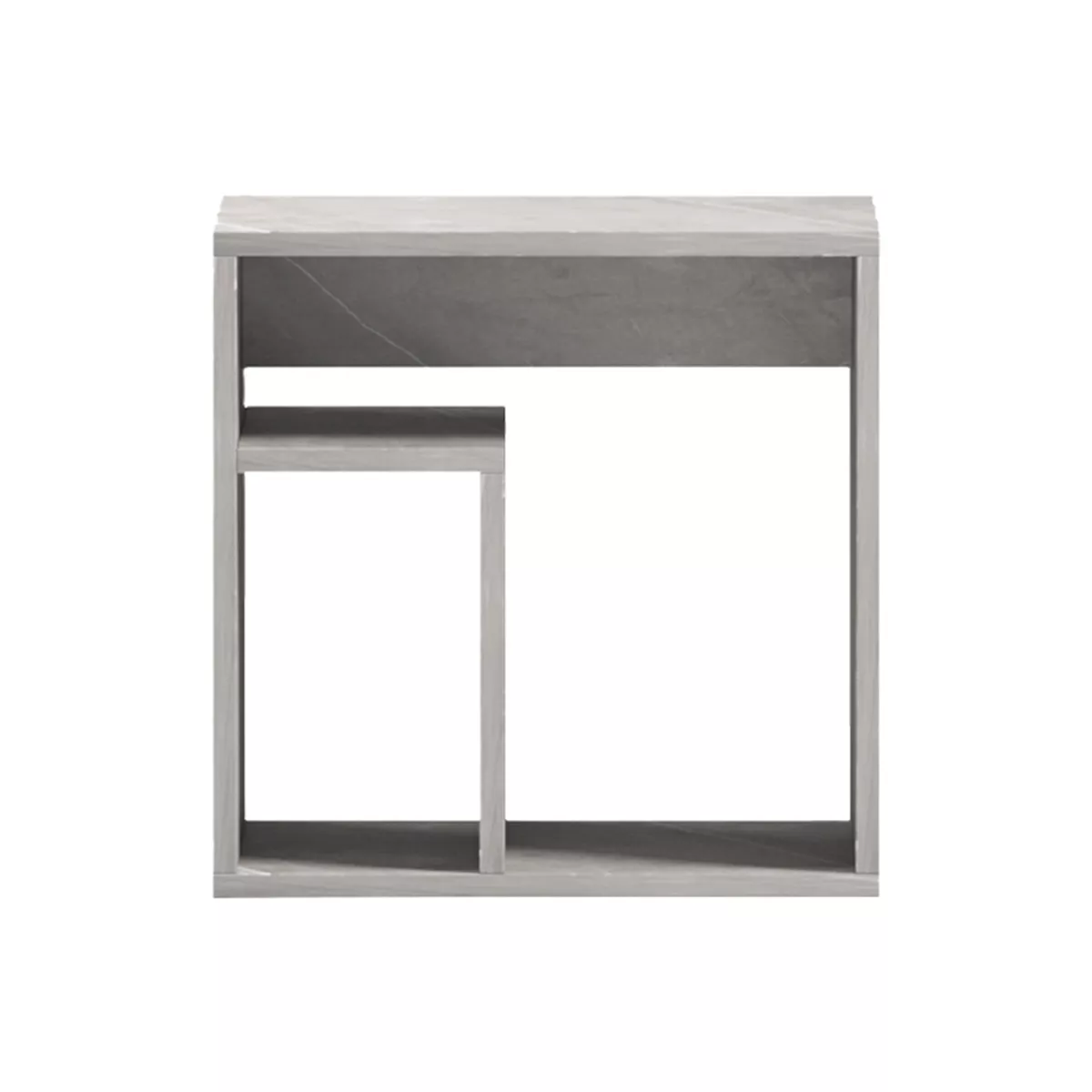 • Stepped Geometric Design: Its distinctive internal structure creates two separate levels and two open compartments. This allows for the creative organization of books, magazines, and small items.