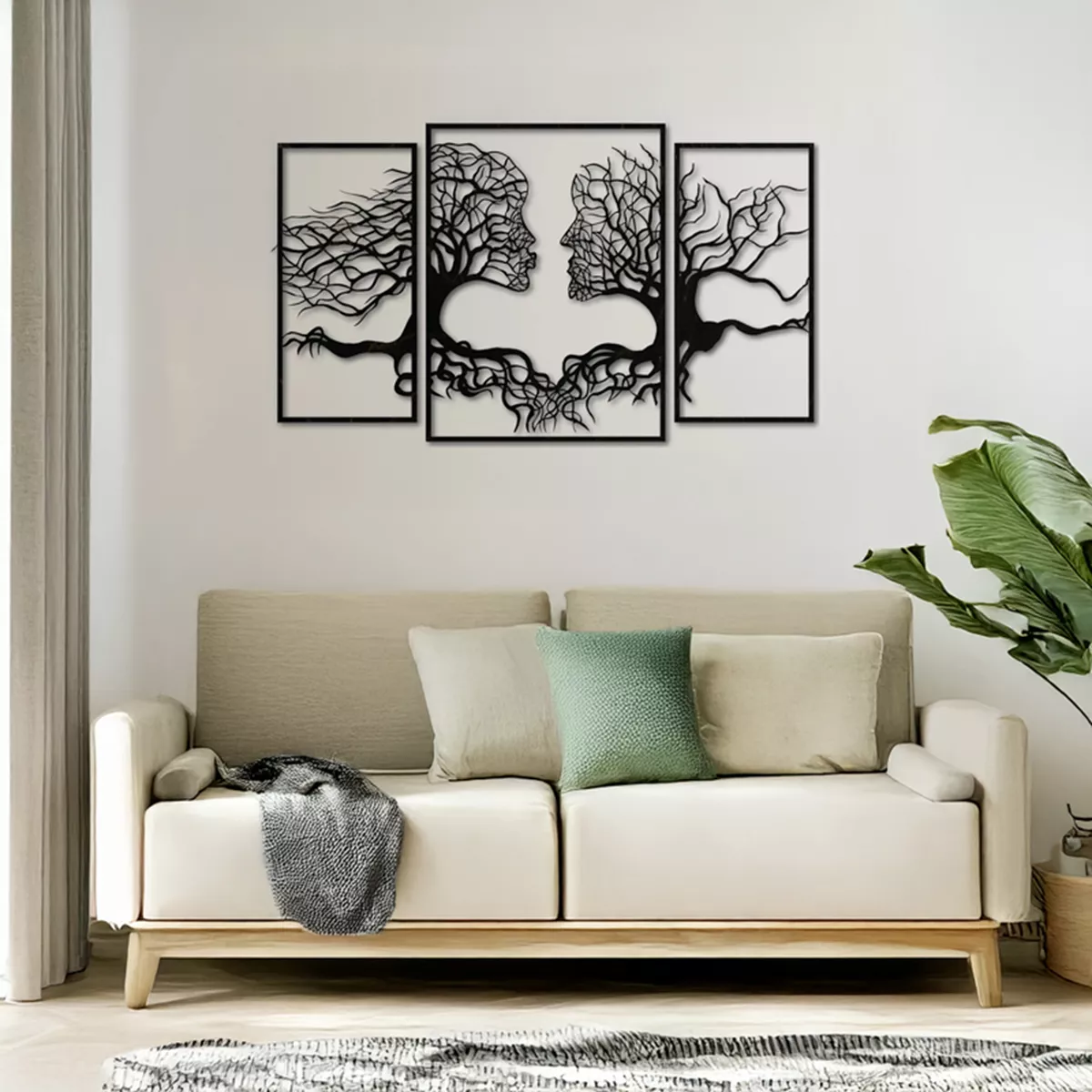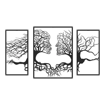 Connecto set is a work of art that tells a story of connection and harmony. Across three frames, the silhouettes of two faces emerge from tree trunks, with their branches and roots intertwining, symbolizing love, friendship, and the shared journey of life.