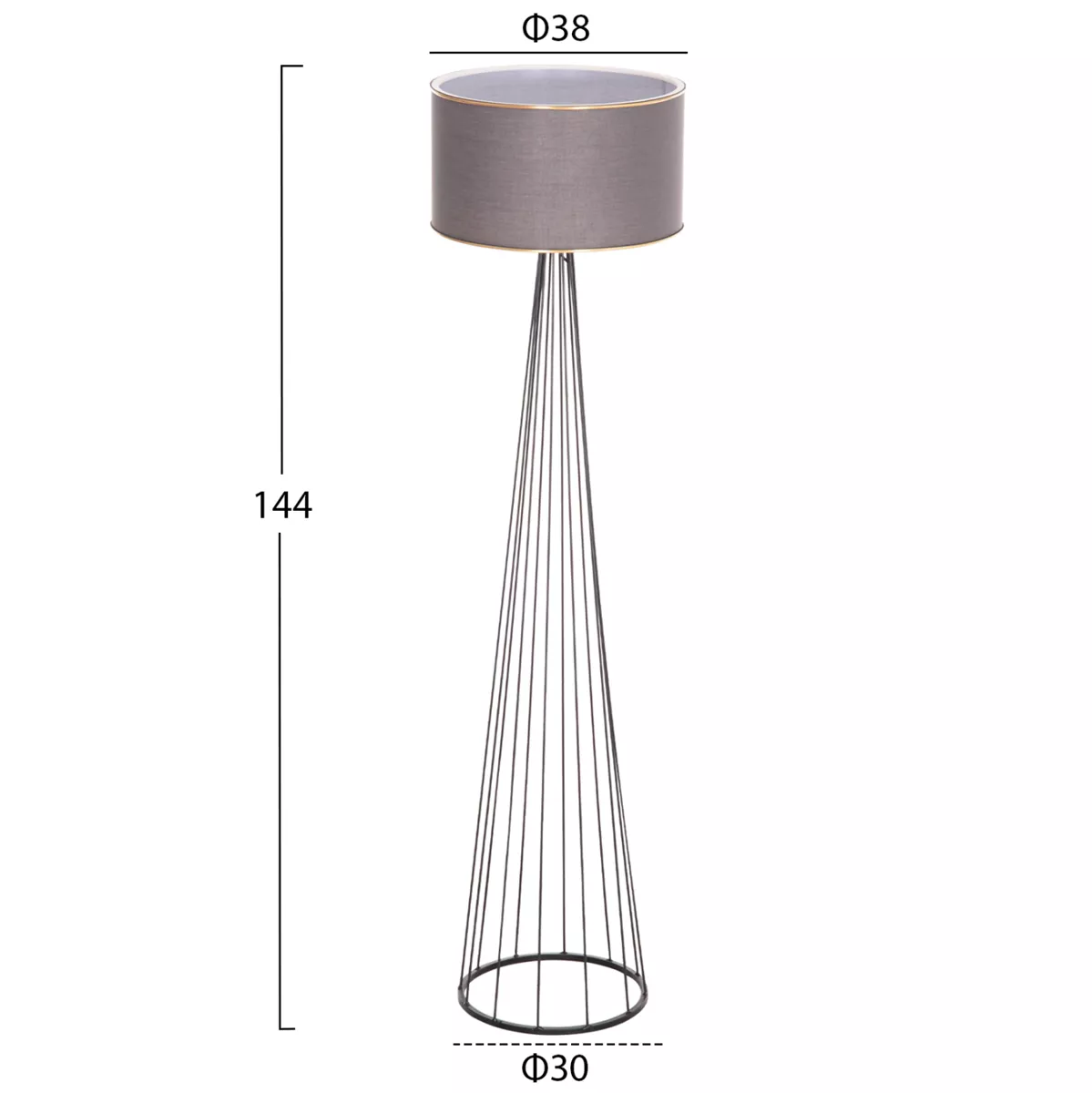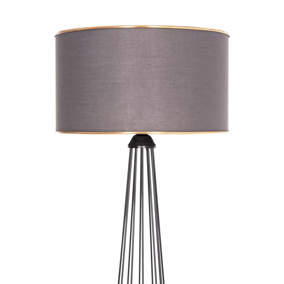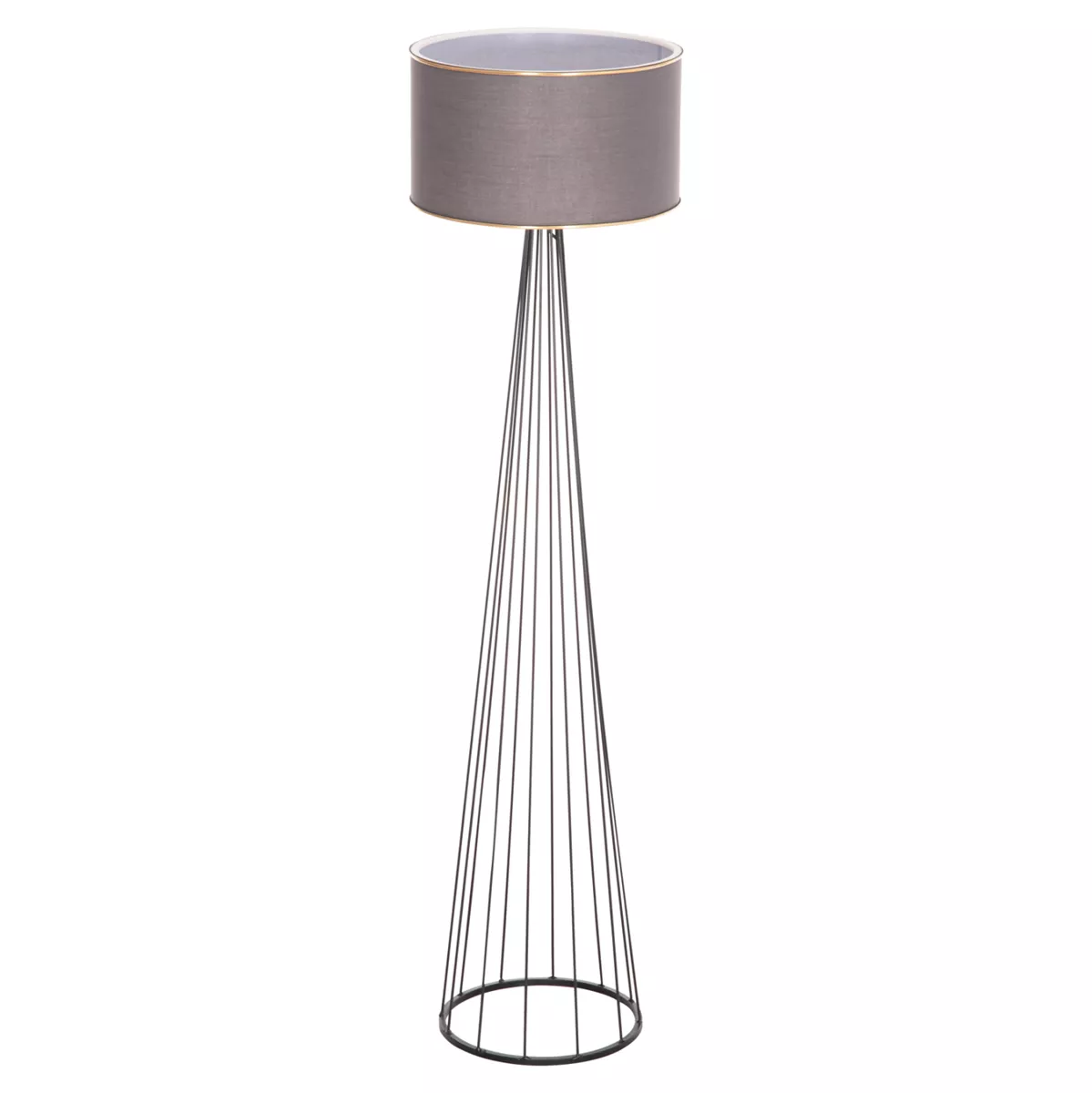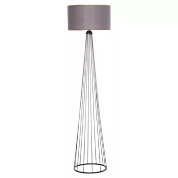 HUE is a floor lamp with a metallic cylindrical column in GREY color. The column has vertical beams in a cylindrical pyramidal shape that "open" towards the bottom where the beams end in the cylindrical rim of the base. The cylindrical cap of the lamp is in dark GREY color. A beautiful floor lamp that will create the atmosphere you always imagined for your space, so that you can create your own corner of relaxation or even decoration. The lamp can be used in offices, cafes, restaurants, hotels, and even at home!