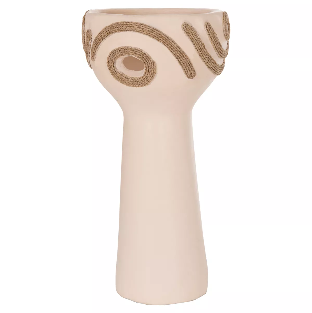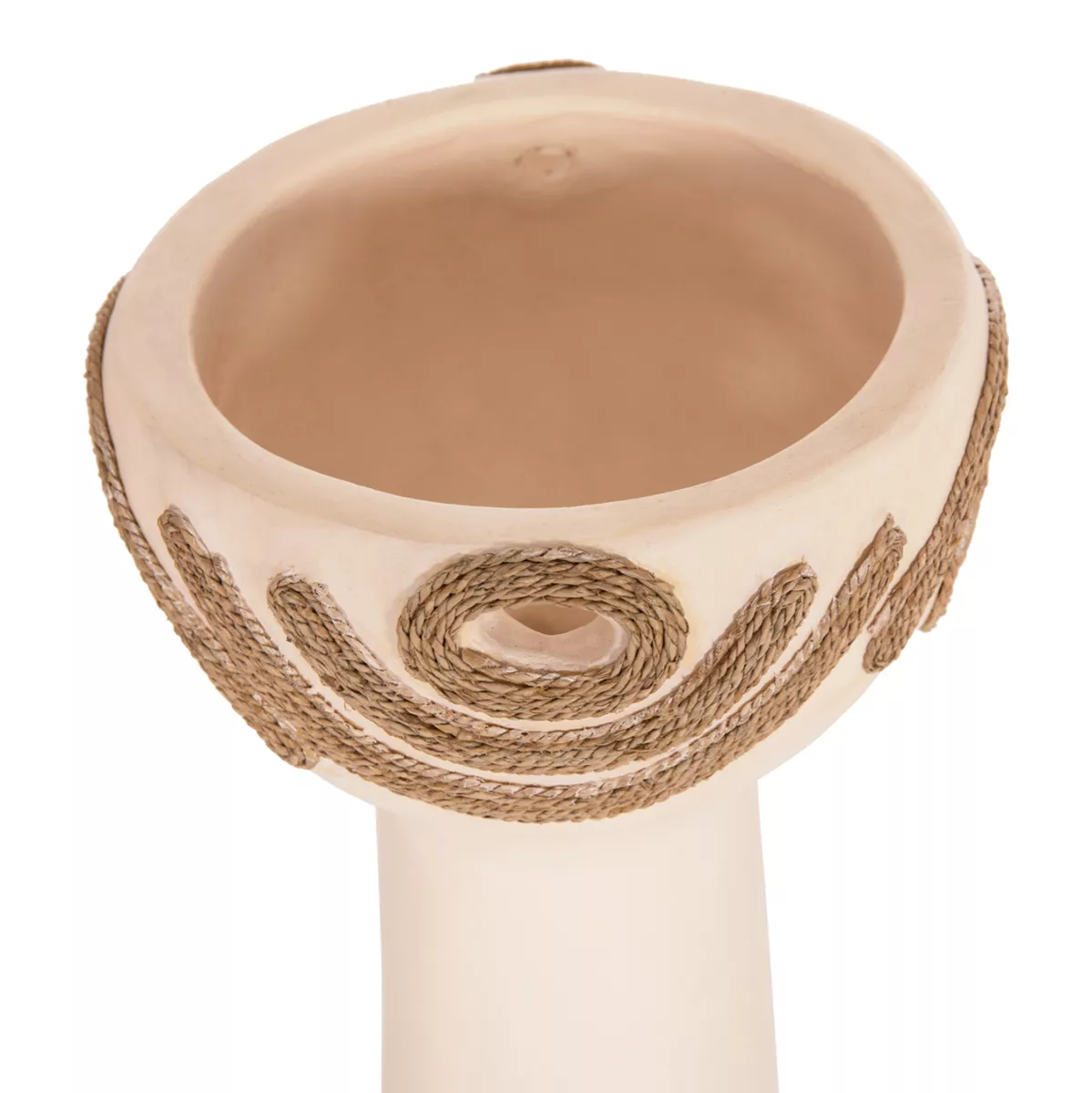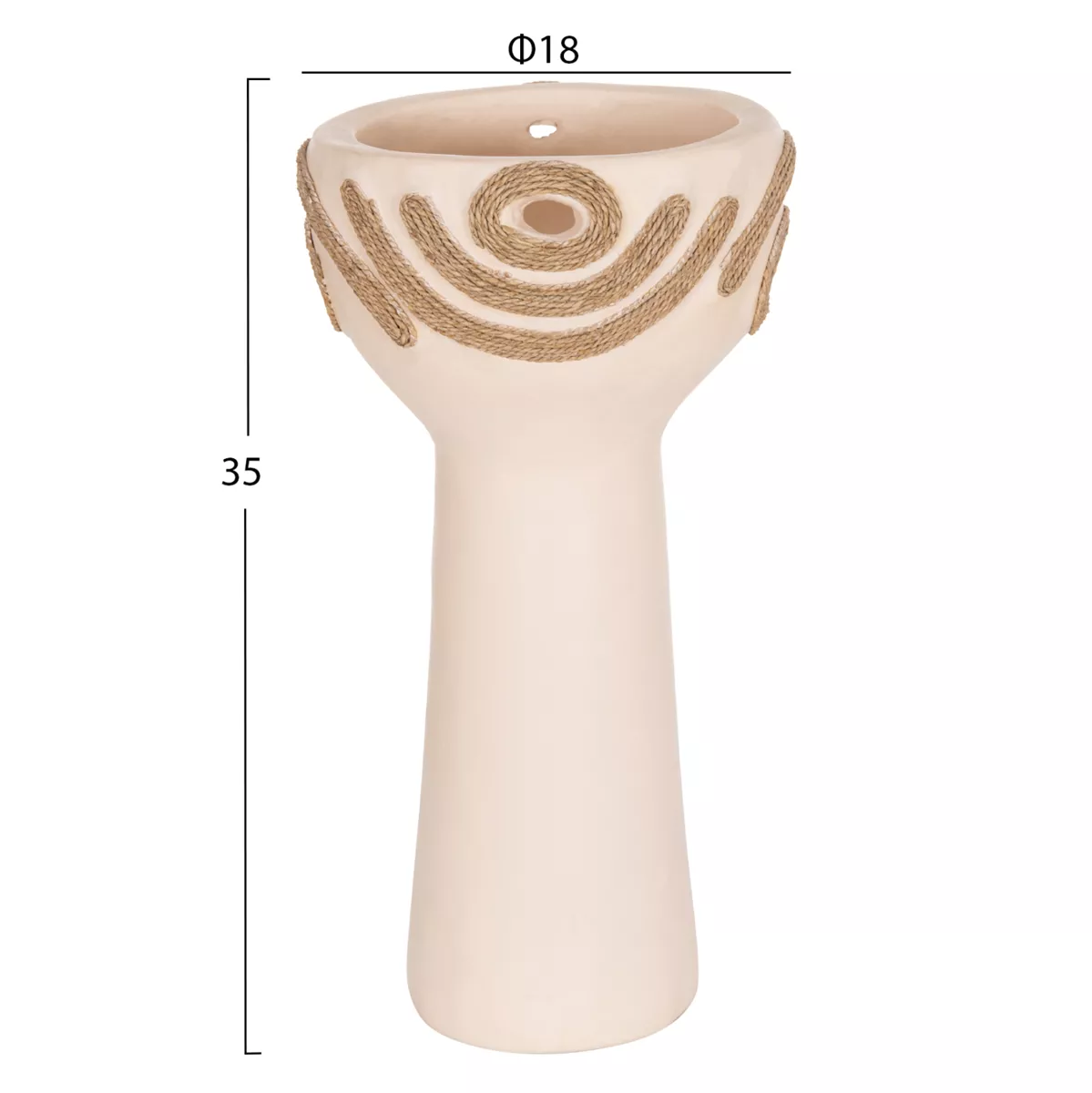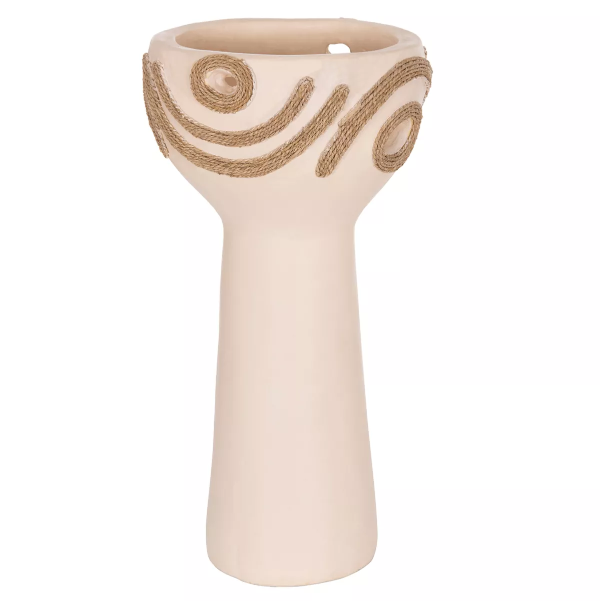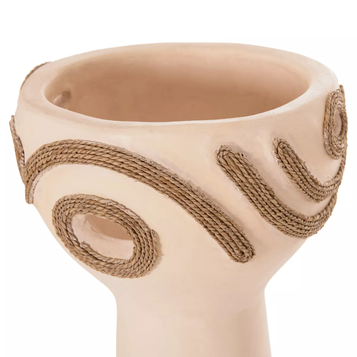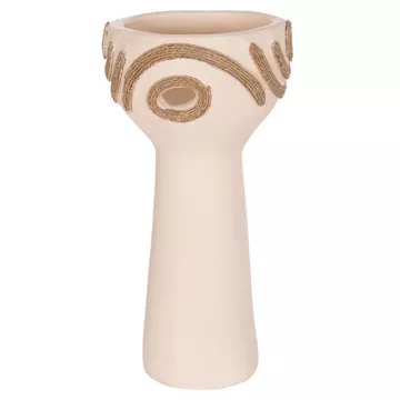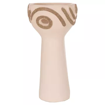 DEAN is an impressive decorative vase in the shape of a tall cup that adds character and intensity to any space. The CREAM WHITE terracotta creates a subtle but bright, earthy presence, while the agel rope decoration on the sides offers natural texture and authentic, handmade style. Ideal for consoles, tables or professional spaces that are looking for special details with premium aesthetic.