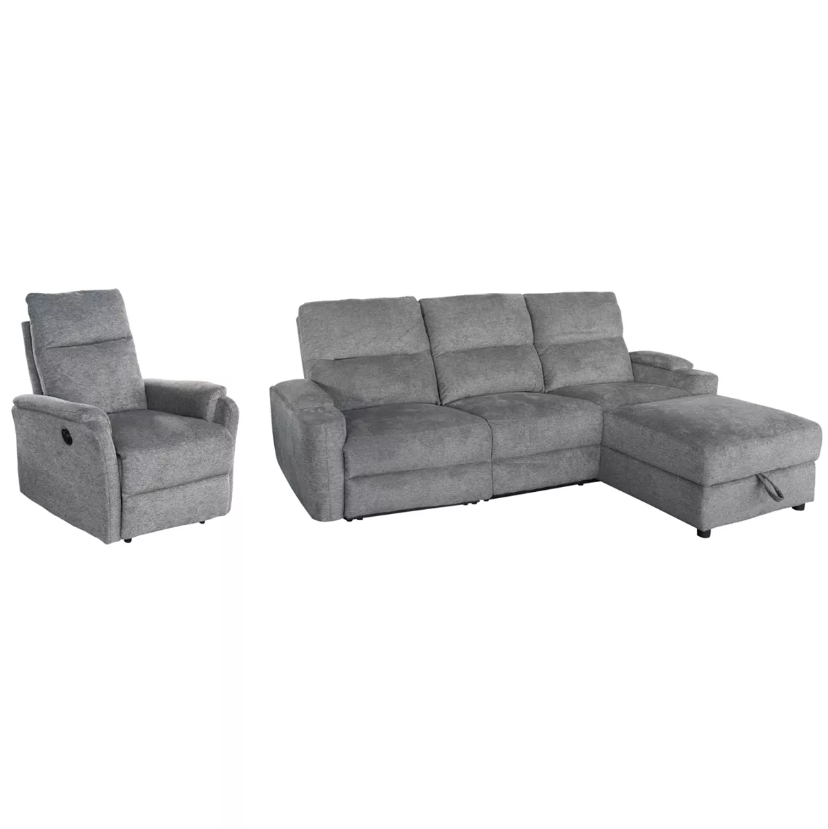 Right Corner Sofa Set with Relax Armchair SYNTHIA —Grey Fabric and Electric Recline