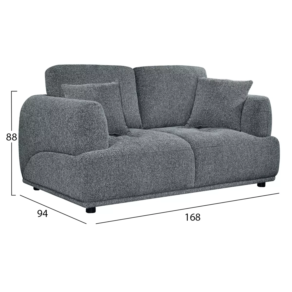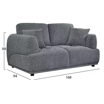 The STRUCTO sofa is an elegant and timeless choice for modern living spaces. Its simple yet imposing design, with clean lines and high, wide arms, creates a sense of comfort and balance in your living room. The upholstery with high-quality embossed fabric in GREY offers a modern aesthetic and easily matches different decoration styles. Its dimensions are enough to ensure comfortable seating for 2 people, while the two decorative pillows ideally complement the appearance and comfort.