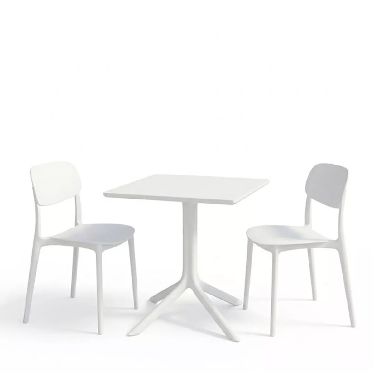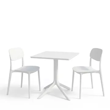 The ultimate solution for your garden, veranda, or balcony. This “total white” set combines the airy design of the Groovy perforated table with the practicality of the stackable Berdian chairs. Made from durable polypropylene, it is built to withstand sun, rain, and daily use, offering unmatched style and convenience.
