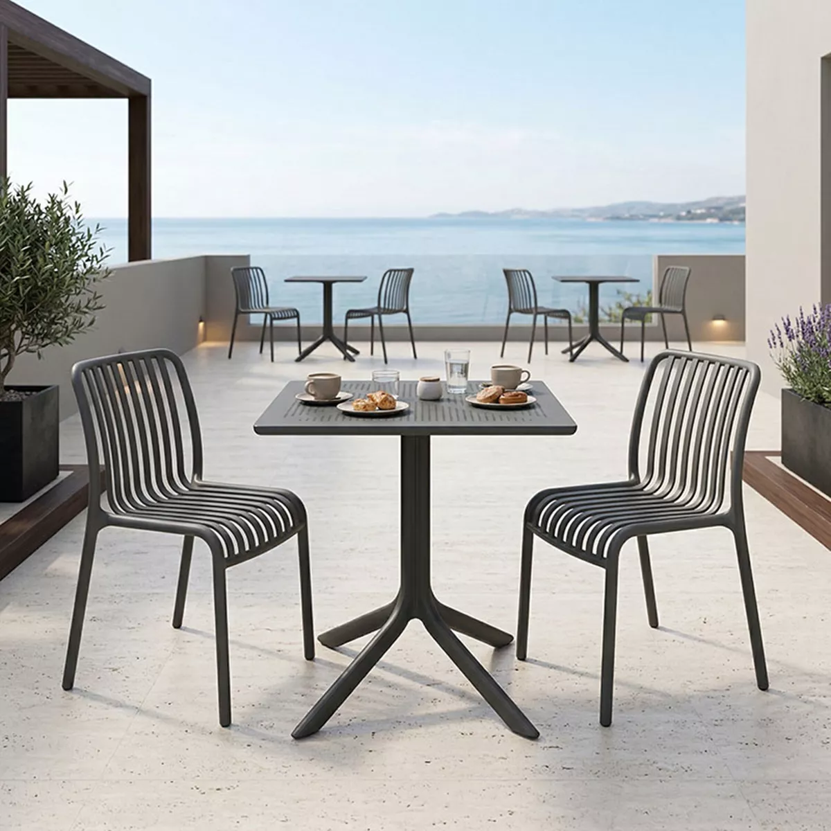 Upgrade your garden or veranda with this modern and highly durable set in an elegant anthracite shade. The combination of industrial design and high-quality construction creates a visually striking result while ensuring maximum comfort.
