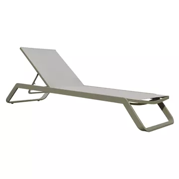 The MARIMAR lounger combines ergonomic design and timeless elegance, offering maximum comfort and durability. Its aluminum frame comes in Taupe, a refined earthy tone between grey and beige that adds a sense of luxury and warmth. The beige textilene fabric provides comfort, breathability, and high resistance to outdoor conditions. The backrest can be adjusted to four levels, plus one completely flat position for total relaxation.