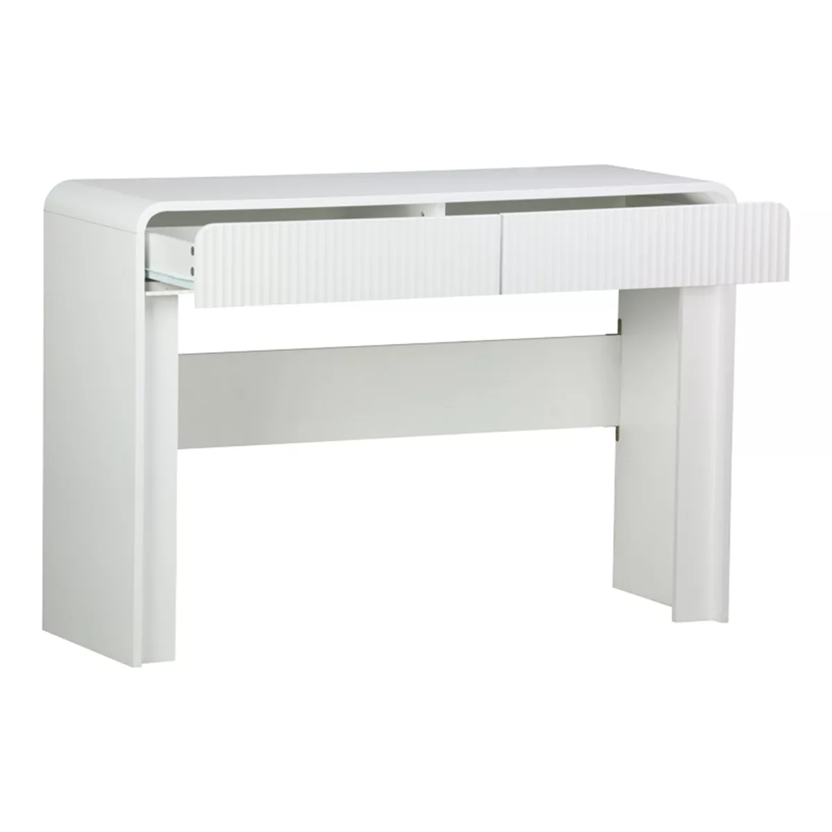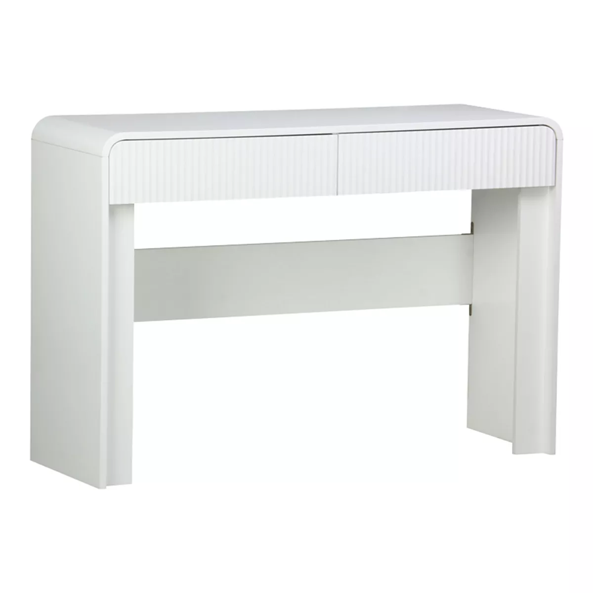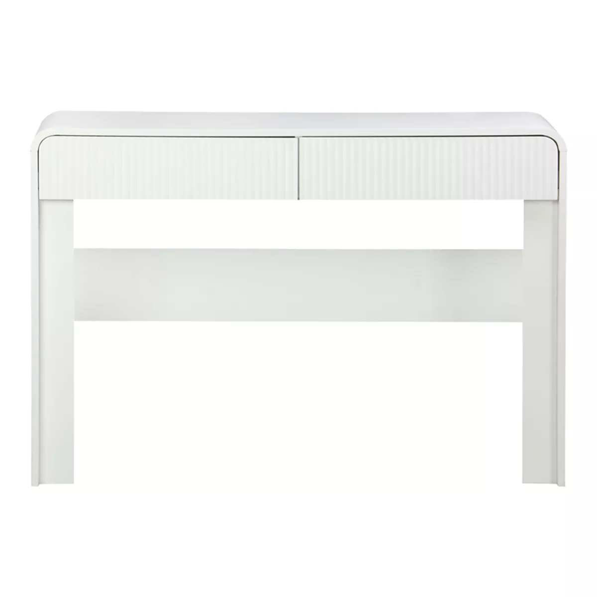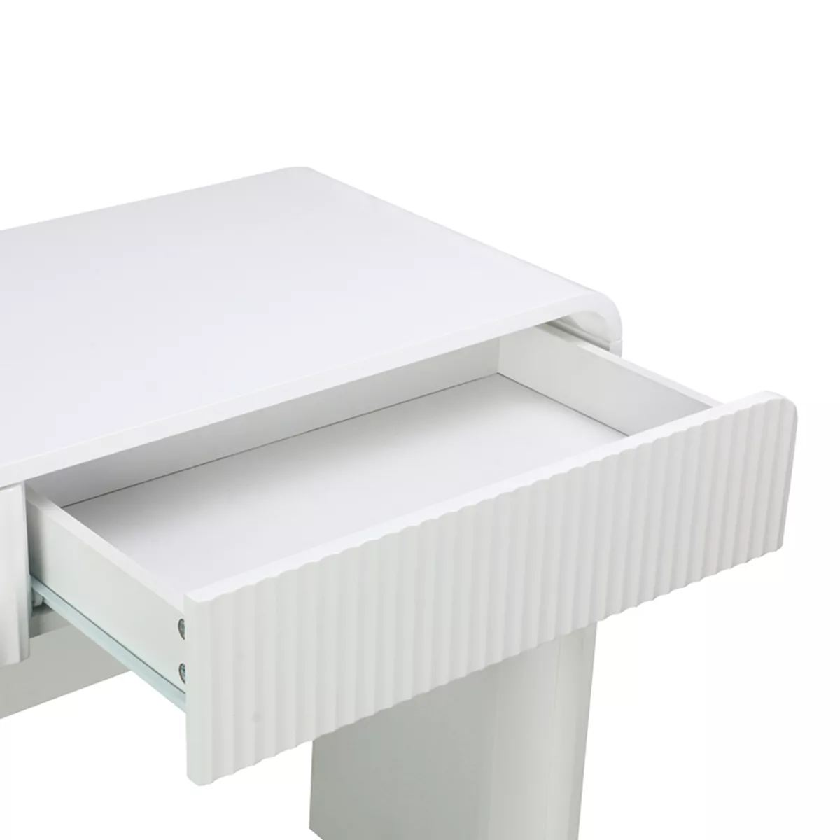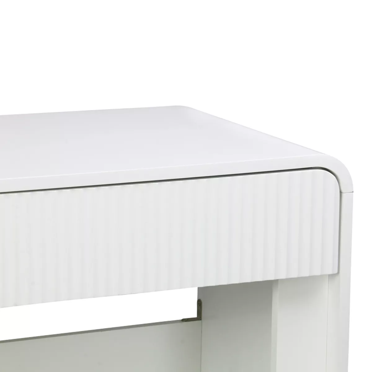 The main design feature lies in the embossed texture of the two drawers, adding a touch of luxe and visual interest to an otherwise minimal surface. The white finish ensures maximum adaptability to any color palette, while the two spacious drawers provide discreet storage for your essentials.