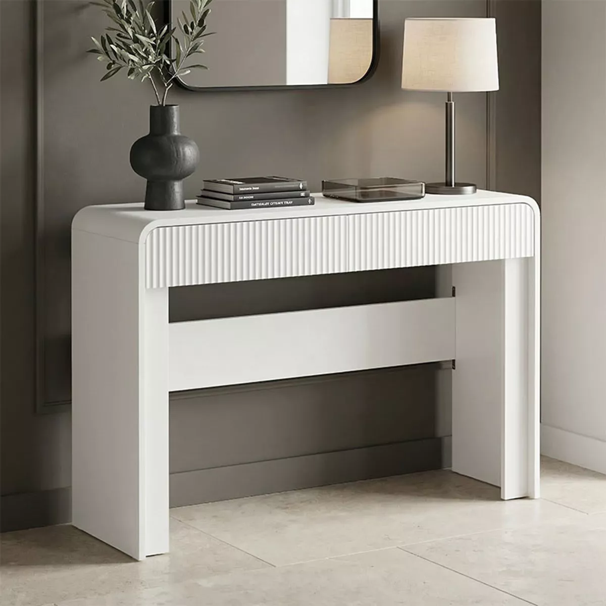 Upgrade your space with the elegant Zeplen console, a perfect blend of high aesthetics and practical storage. Its design is defined by clean, fluid lines and rounded corners that soften its modern geometry.