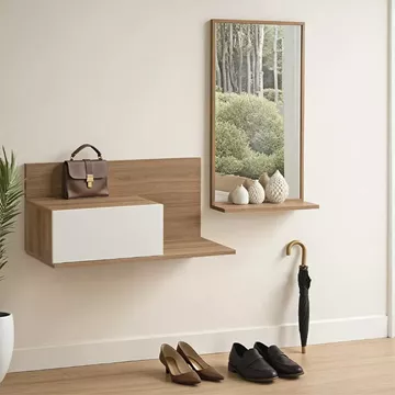 Miranda pakoworld entrance furniture with mirror in white-oak shade 60x30x89.5cm