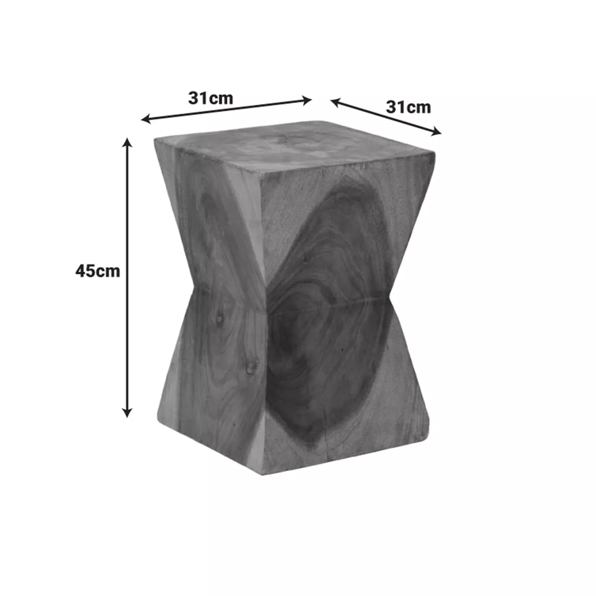 This unique Clepsydra stool, with its distinctive hourglass-shaped design, is crafted from solid suar wood. Each piece is handmade, carrying the natural shades and warmth of the wood, making it the perfect choice to add a touch of luxury and natural elegance to your space. It can be used as a stool, a side table, or a decorative accent.