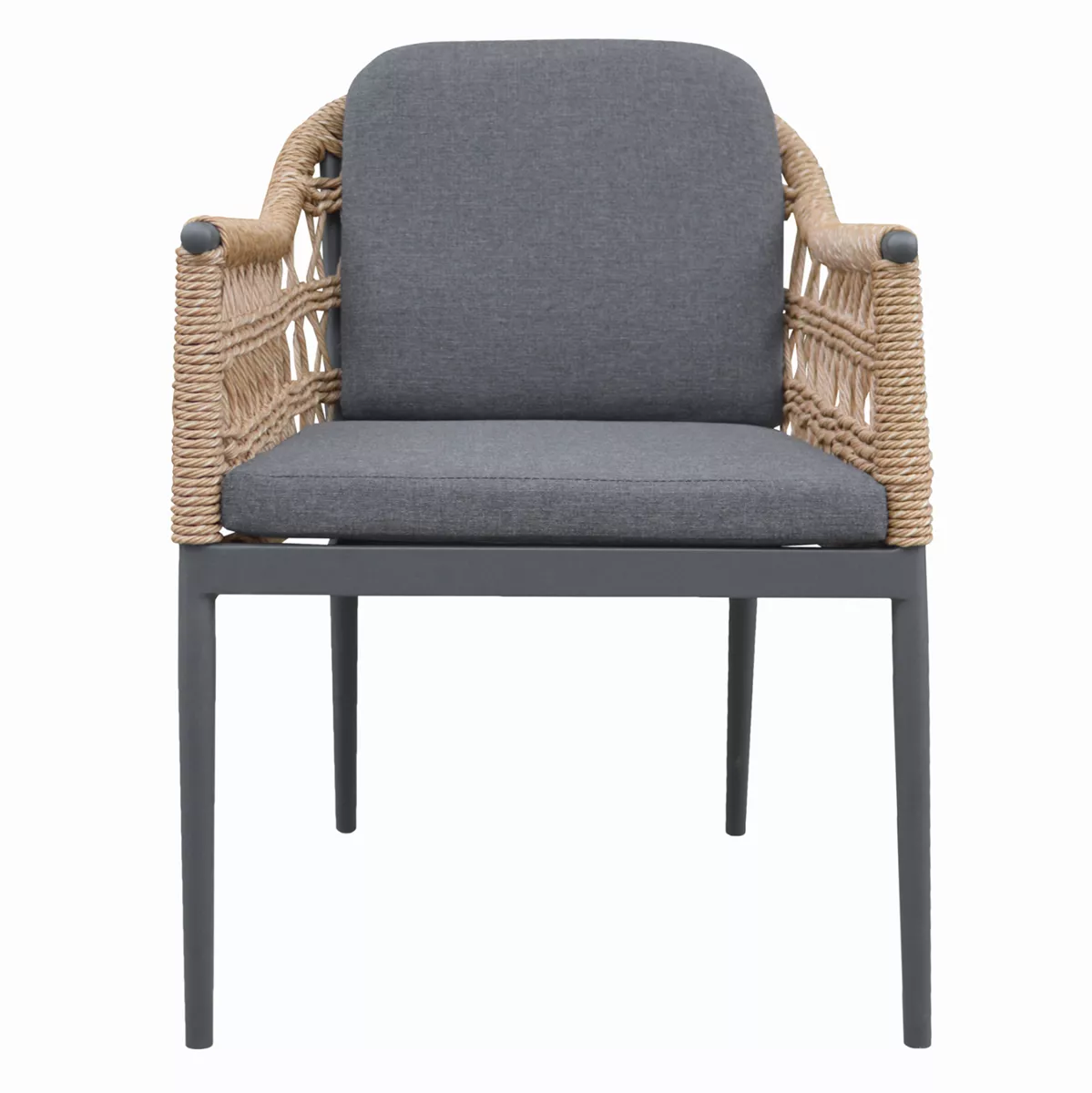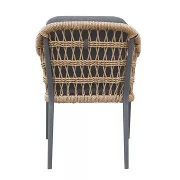 Upgrade the aesthetics of your garden or terrace with the BOXER dining armchair. The unique combination of the sturdy aluminum frame in anthracite GRAY with the elegant weave of 7mm twist wicker in a natural shade, creates a result that balances between modern industrial and timeless boho style.