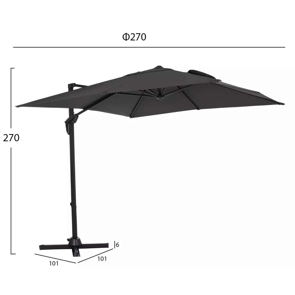 JAVANTE Garden/Pool Umbrella 2.7x2.7m with Side Pole (hanging) & 360° Rotation – Grey