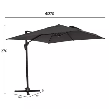 Overall dimensions: 2.7 x 2.7 meters.---Base: 101x101x6H cm.