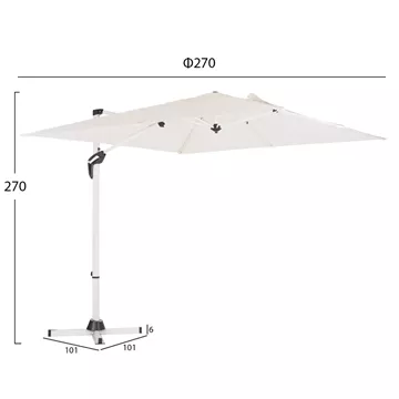 Overall dimensions: 2.7 x 2.7 meters. ---Base: 101x101x6H cm.