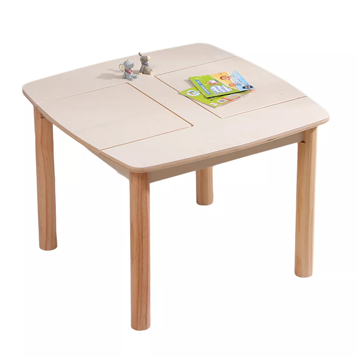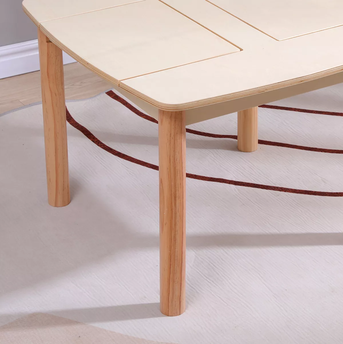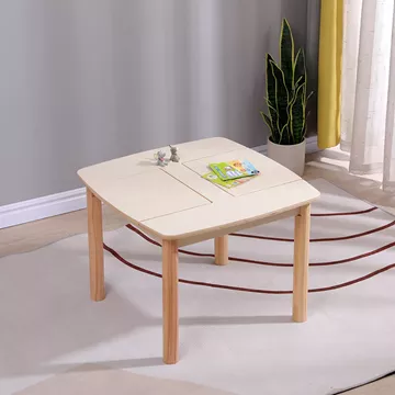 The RICKI children's table is designed to provide a functional and safe creative space for the child. With a square shape and rounded corners, it ensures comfort and protection during use, while its natural aesthetics harmoniously fit into any child's room.