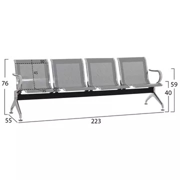 The AVIATOR 4-Seater Bench is an ideal choice for waiting areas, professional environments and public spaces. The airport-style design with separate seats offers comfort and proper demarcation for each user, while the metal construction in silver color exudes a modern and professional character.