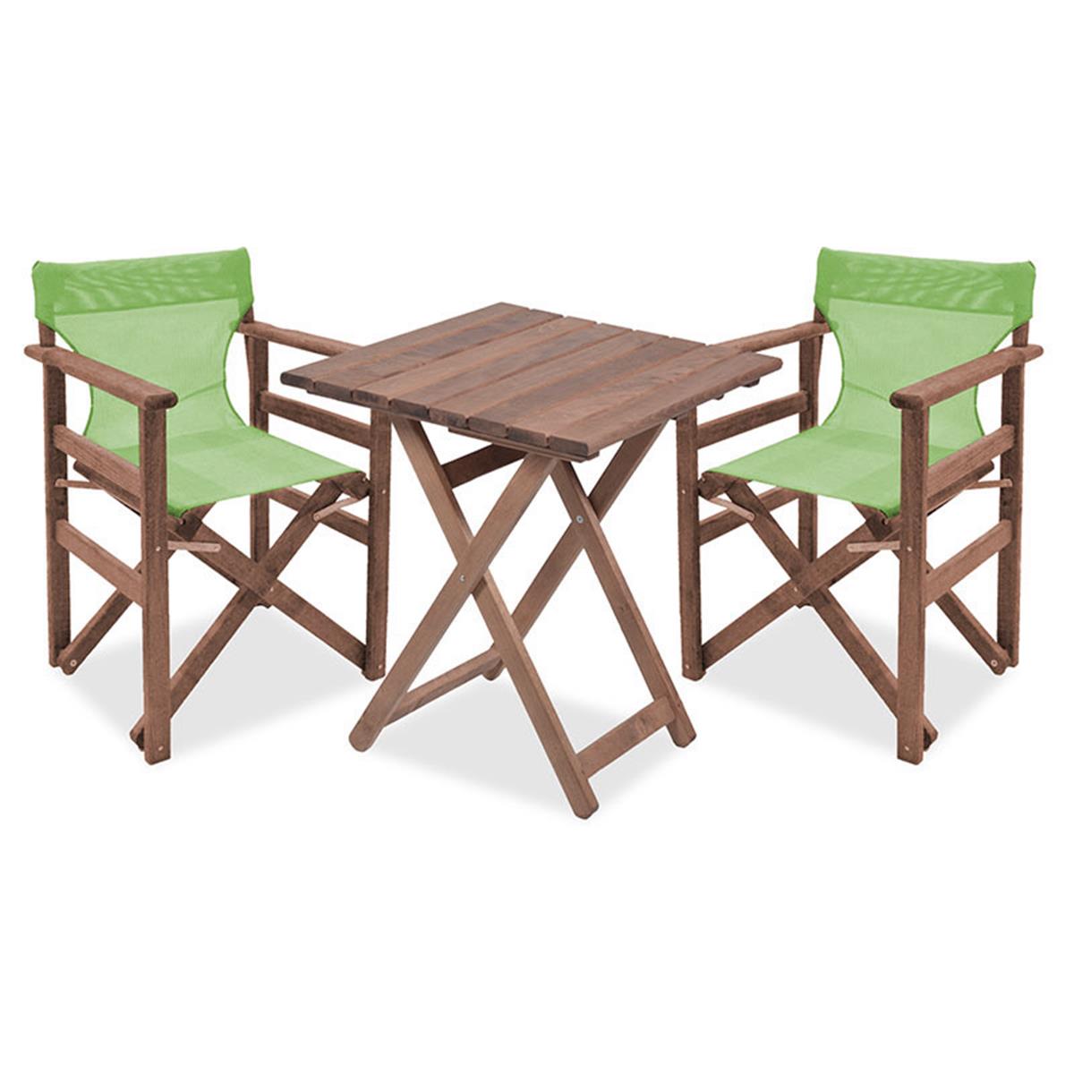 Garden dining table Retto set of 3 pieces solid beech wood walnut-light green 70x70x71cm