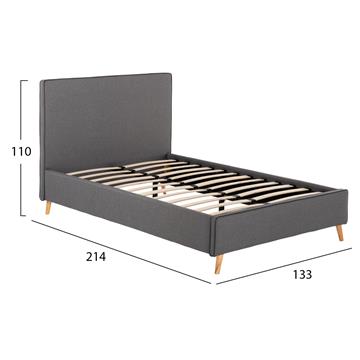 The MAYLIN bed is the best way to enjoy every moment of your sleep. It has a high headboard with fabric upholstery in GREY color and edge-rails in DARK GREY color, while the mattress "sits" on two rows of anatomical boards, following the traditional way of making a bed. A modern and simple proposal that will renew your bedroom.