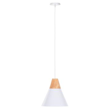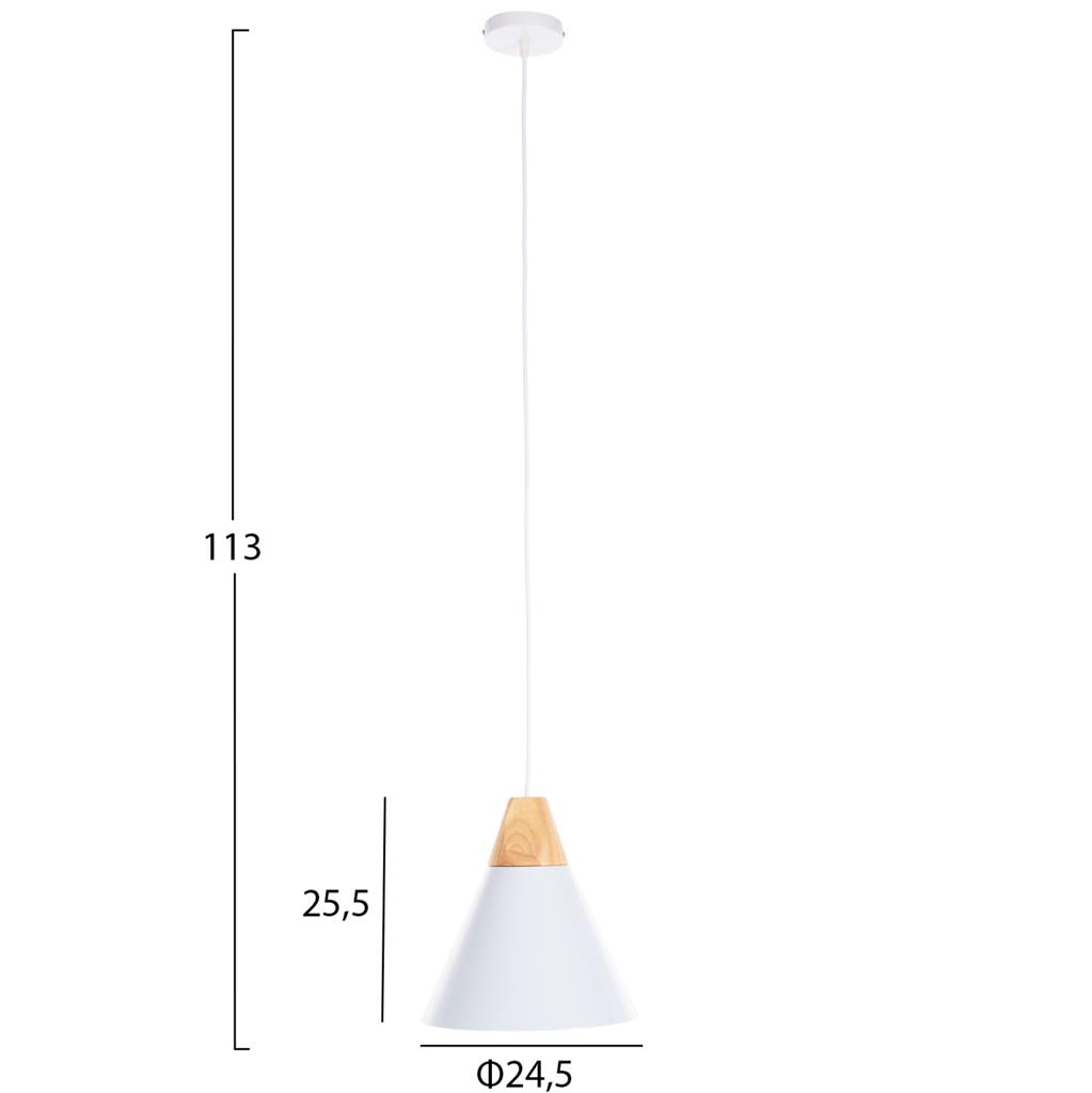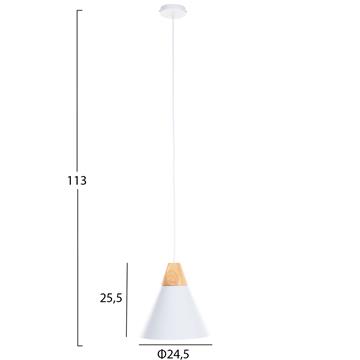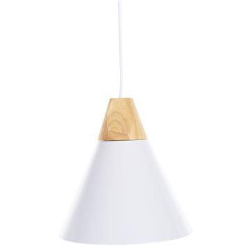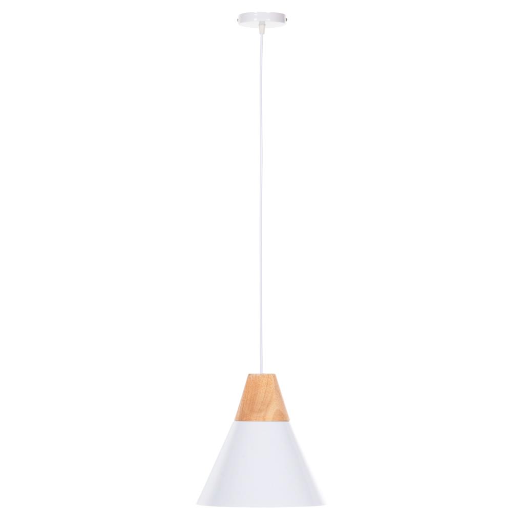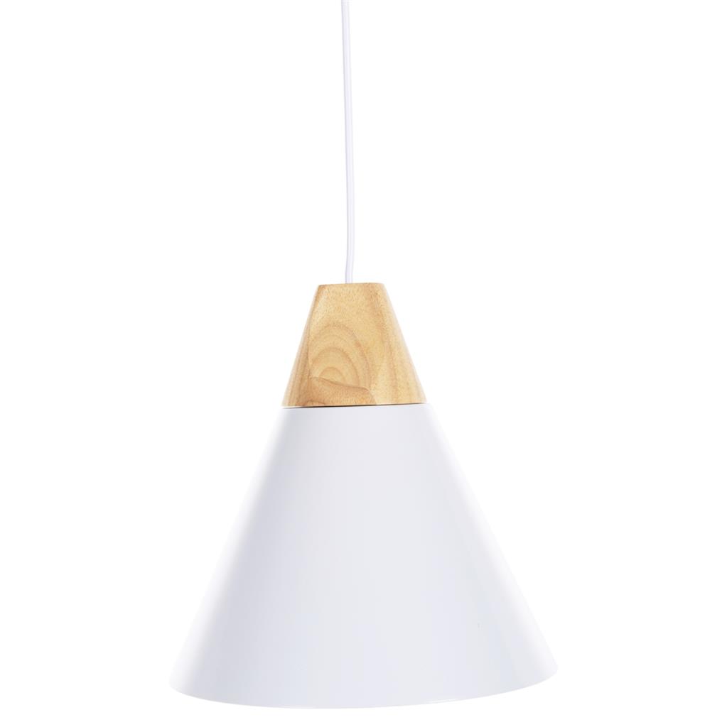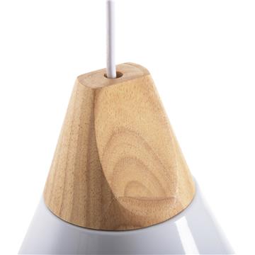 Discover our new pendant ceiling light and complete your decoration. This is a lamp with a WHITE cone-shaped metal cap with wood detailing on the top of the lamp. Aesthetically, it is completed with the, also, WHITE hanging cable and white ceiling base and is the latest trend in ceiling lights.