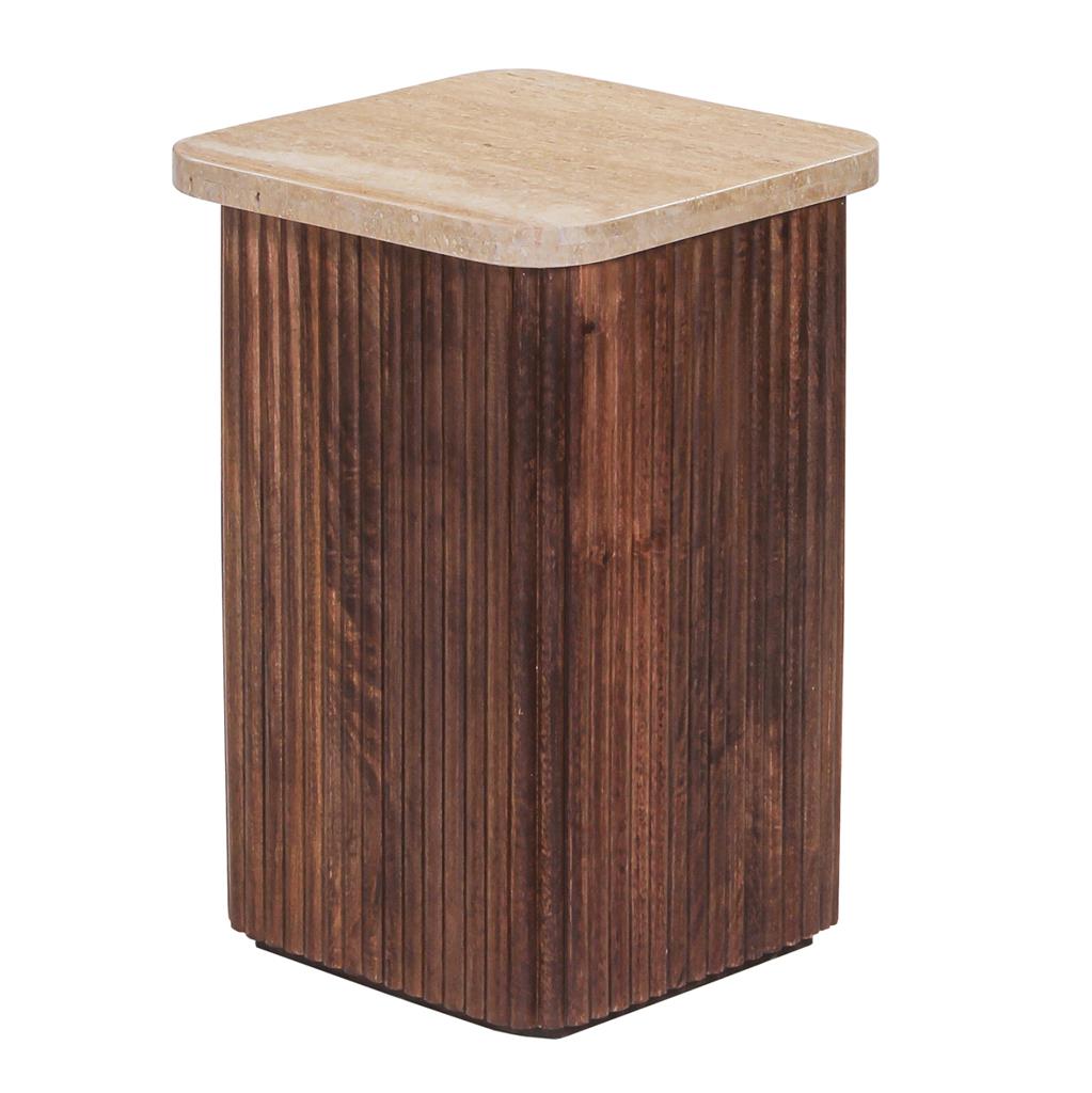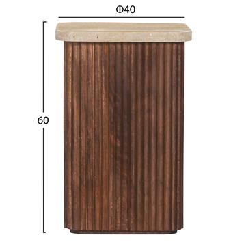GLADYS is a square side table for the living room in BROWN color with a travertine tabletop in its WHITE color. It is a luxurious and practical piece of furniture for your living room that will not go unnoticed!