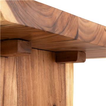 The table is made of solid SUAR wood. When we refer to solid wood, we mean wood made entirely from the trunk of a tree. Solid wood is the most expensive choice in terms of wood but stands out for its timeless aesthetics.