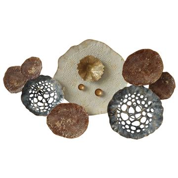 Metal wall decoration in anthracite and terracotta shade with gold and off-white details.