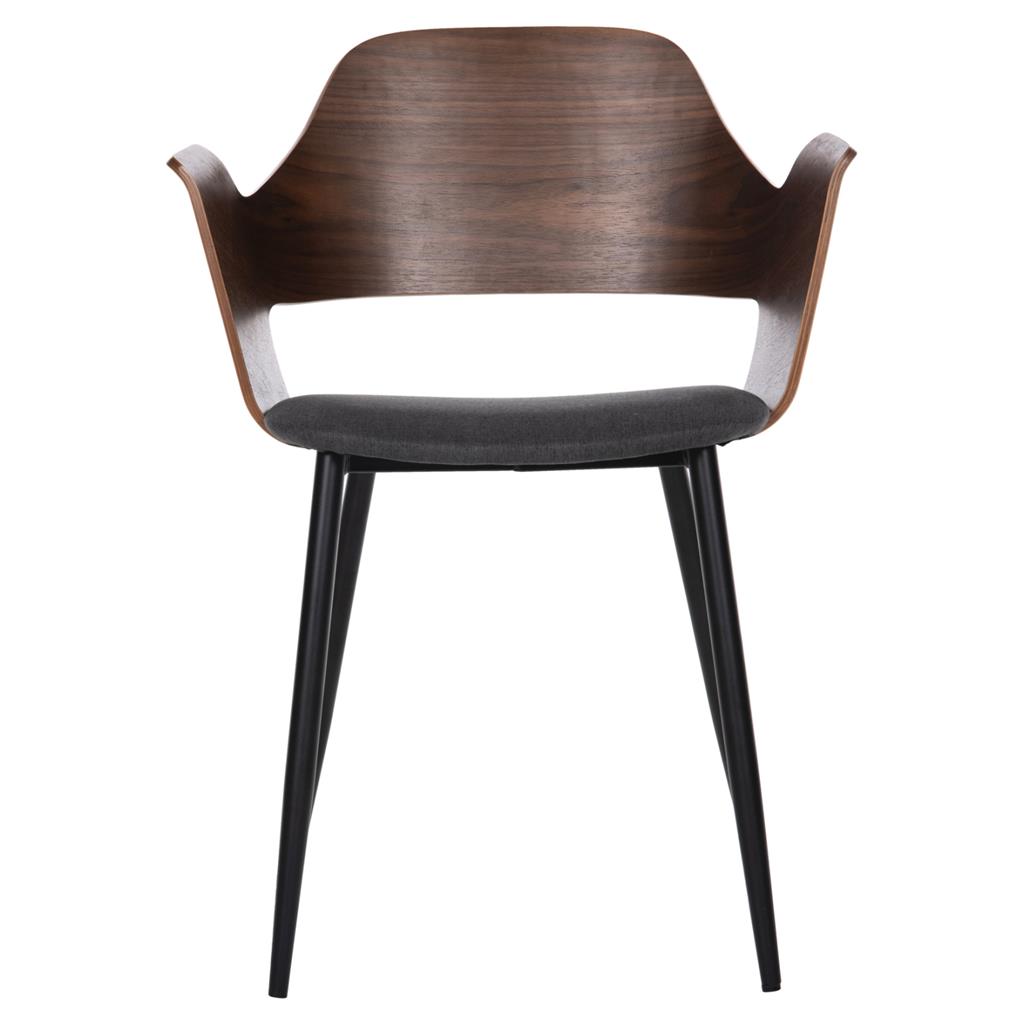 The beautiful VELP chair has a GREY seat and BLACK metal legs. What stands out, however, is that the entire back is made of wood in a WALNUT color and is curved and comfortable. A chair, mainly for the dining room, that gives an air of luxury. Quality and elegant will definitely catch the eye.