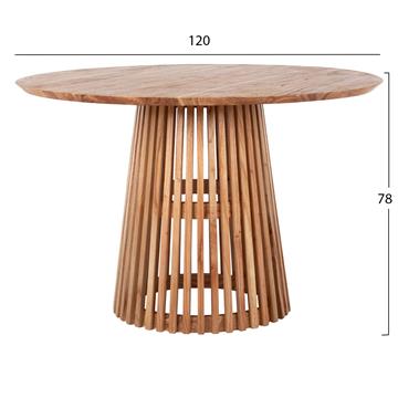 ΗΜ9388.01 is a round dining table, with satisfactory dimensions in a natural wood color. The tabletop rests on a wooden structure in the center with several beams in a circular arrangement joined together by internal wooden rings. This table will aesthetically upgrade your kitchen or dining room while it can match many different styles and colors in the surrounding space. You can even choose from a wide range of different chairs to match with this table.